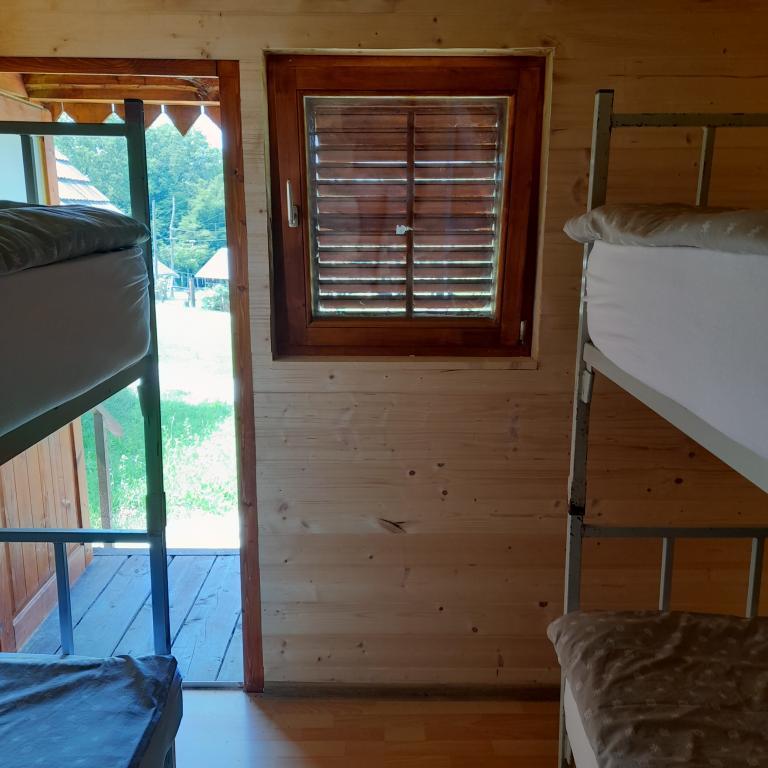 Domky jsou vyrobeny z přírodních materiálů - dřeva. Jsou postaveny tradičním způsobem a mají rozměry 4 x 3 m. V domku se může ubytovat 5 dospělých a dvě děti do 15 let nebo 3 dospělí. Každý domek má terasu s výhledem. WC a sprchy se nacházejí v centrálním sociálním zařízení a jsou vzdálené pouhých 20 metrů. Nacházejí se v krásné přírodě, v bezprostřední blízkosti adrenalinového parku.