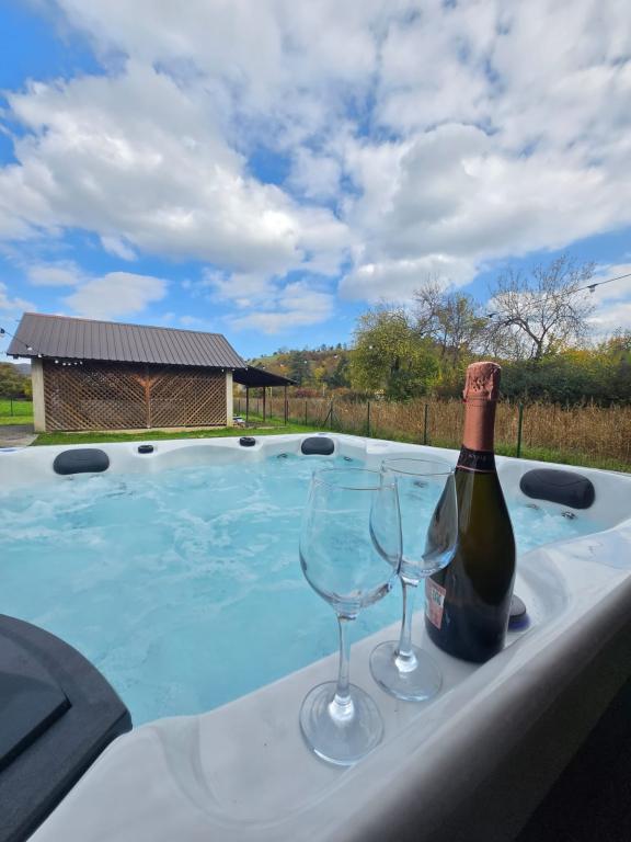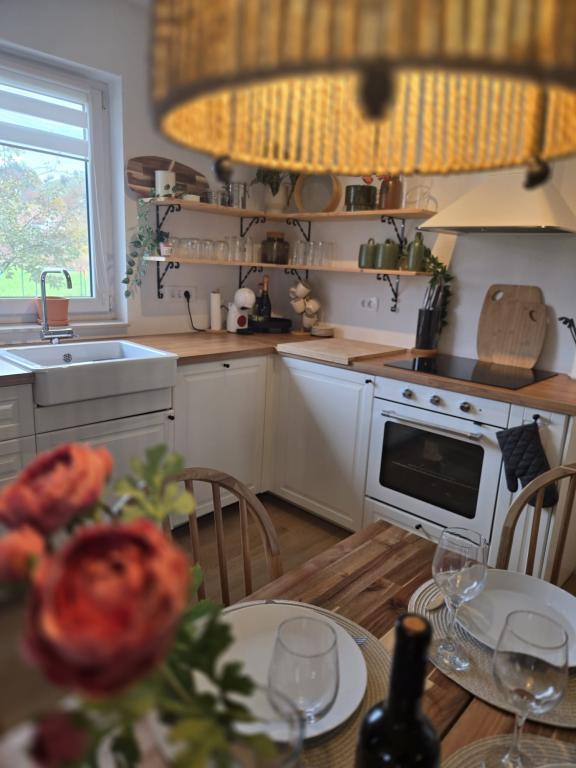 Rodinný dům Den je oázou klidu a pohody. Prostorný dům, který je zcela k dispozici, poskytuje domáckou atmosféru v obci a jejím okolí. Vedle domu je opravdová myslivecká krčma s krbem a vybavenou kuchyní, kde si můžete připravovat jídlo nebo se bavit. Výhled z okna na pole a lesy nabízí jedinečné chvíle odpočinku. Poté, co zaparkujete své vozidlo v garáži, zapomenete na ruch velkoměsta, zbyde vám jen čistá dovolená a spojení přírody a člověka. Domácí mazlíčci jsou povoleni. Dům je plně vybaven pro max. 8 osob.