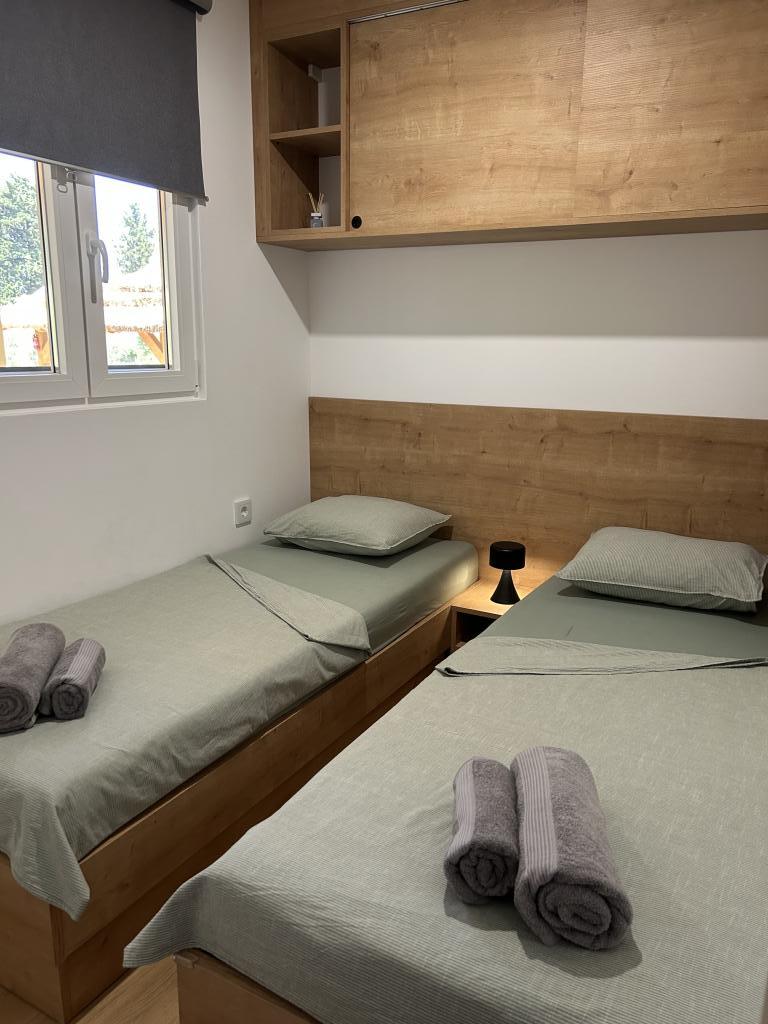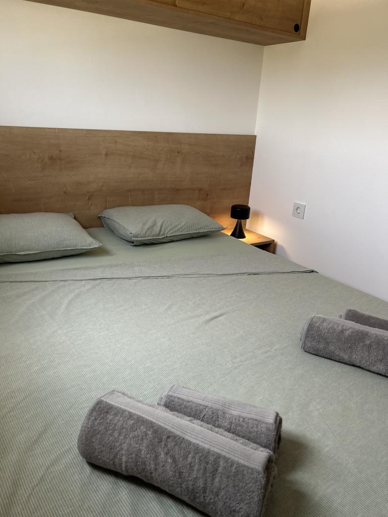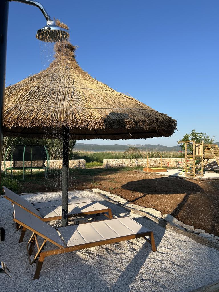 Klidná dovolená na břehu jezera a moře. Zelená oáza je moderně vybavený mobilní dům v odlehlé části Pakoštane. Navrženo pro spojení pohodlí a přírody. Dům je napájen solární energií. Ubytování je šetrné k životnímu prostředí, aby splynulo s čistou přírodou, ve které se nachází. Ideální pro odpočinek se zvuky přírody a domácími zvířaty. Přímý výhled na přírodní park Vranské jezero. Mobilní dům má dvě ložnice, kuchyň, toaletu, obývací pokoj a terasu (30 m2). Zahrada (850 m2) obsahuje prostor na opalování, gril, altán, vířivku, venkovní sprchu a dětské hřiště. Je vzdálený 150 m od jezera, ke kterému se dostanete soukromou cestou. Zajištěné parkovací místo. Centrum města, moře a pláže jsou vzdálené 1 km. Čeká vás sladké i slané dobrodružství (Vranské jezero/Jaderské moře). Ubytování se nachází na rodinné farmě OPG Barešić.