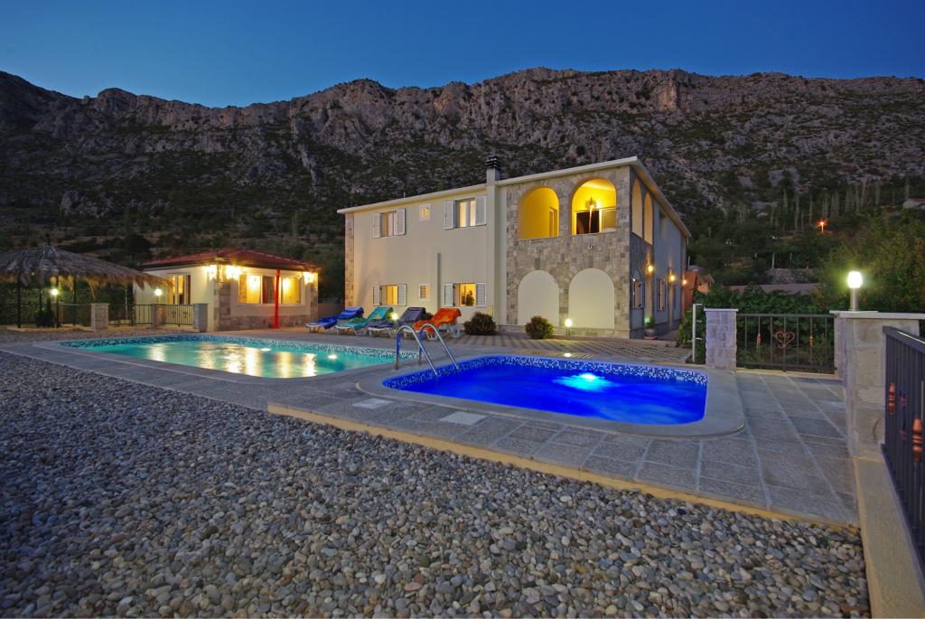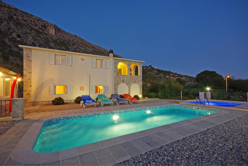 Dům (8 dospělých 2 dětí) je obklopen vinicemi a sady v Zavojani, 10 minut jízdy od města Vrgorac a 25 minut jízdy od Makarské. Vyhřívaný bazén a jacuzzi jsou zahrnuty v ceně. Krásný dům (210m2) s vyhřívaným bazénem (velikost 8x3 m, hloubka 1, 5 m) a vyhřívanou vířivkou (velikost 3x3 m, hloubka 1, 2 m) má 4 ložnice, 3 koupelny, posilovnu v bytě a rekreační oblast, plně vybavená kuchyň a plazmová TV. Hosté mají k dispozici bezplatné parkování a bezplatné Wi-Fi, venkovní jídelní kout s kuchyní a grilem. Dům je oplocený a je bezpečný pro děti. Dům byl postaven v roce 2009, renovovaný v roce 2017, má velkou zahradu (1100 m2) s dětským hřištěm. Další soused je 100 metrů daleko.