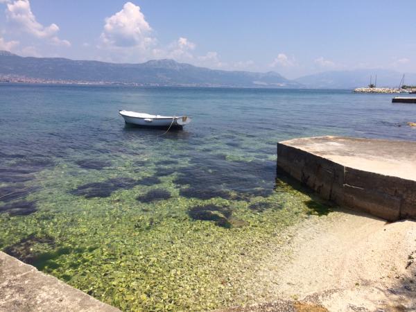 Plně vybavené a moderní byt v klidné části obce Arbanija na ostrově Čiovo u Trogiru, který se nachází přímo u moře. Byt se nachází ve druhém patře s velkou terasou s výhledem na moře.