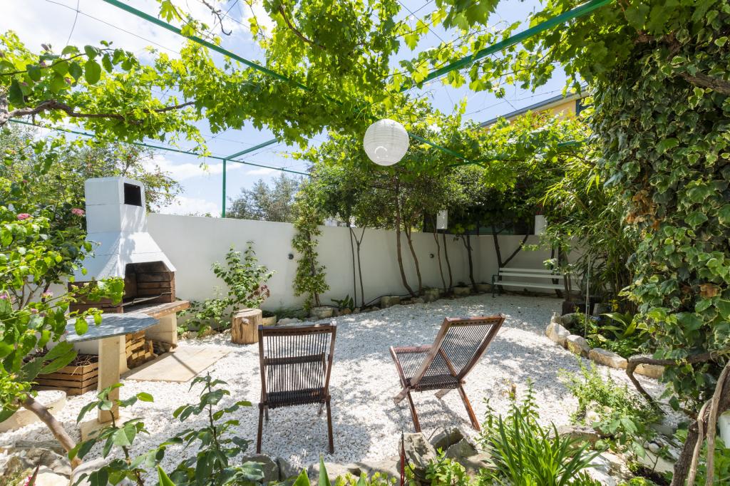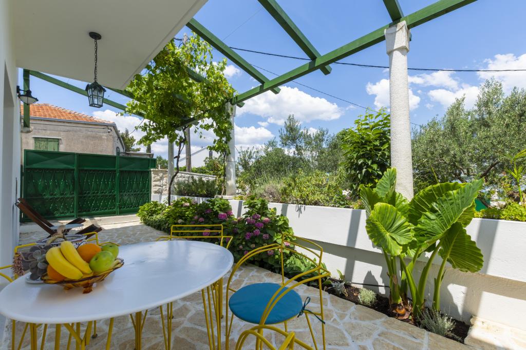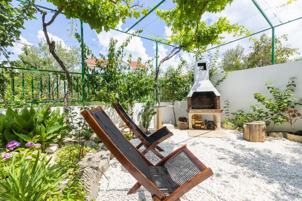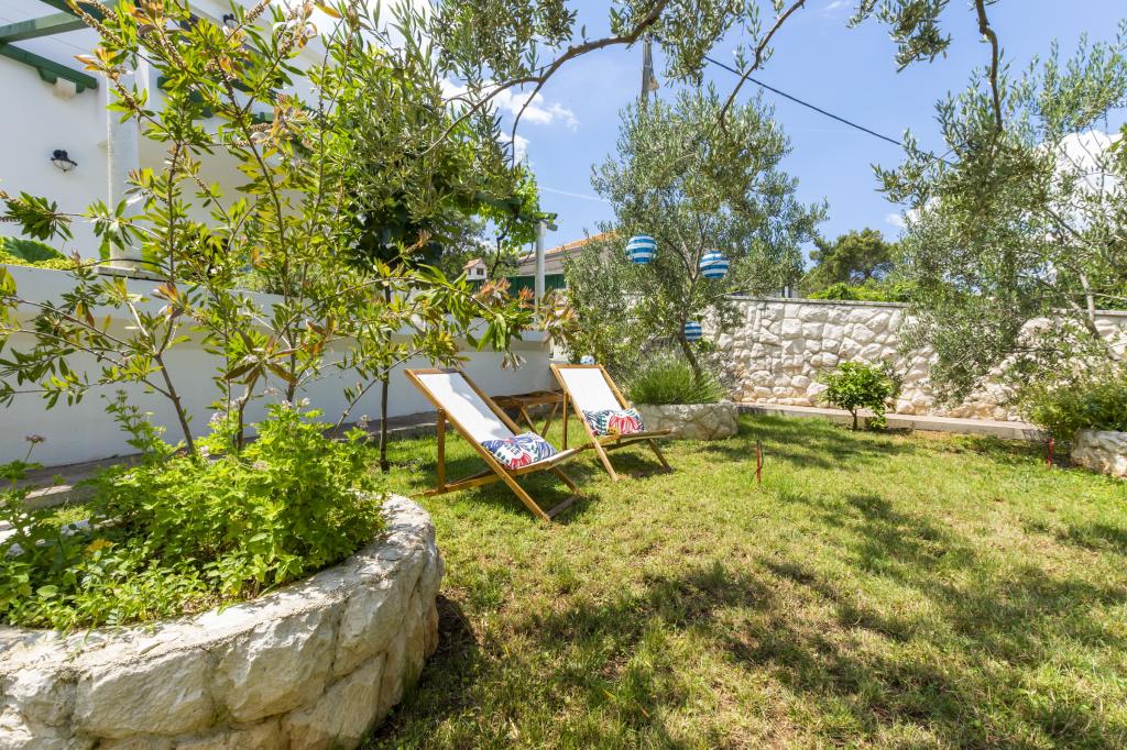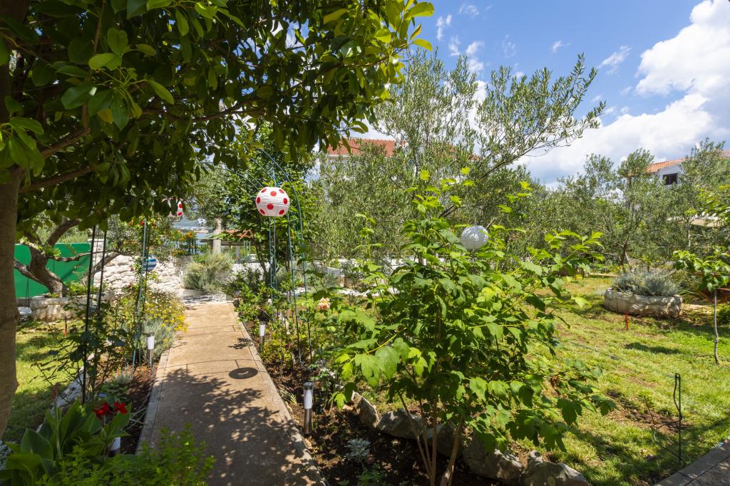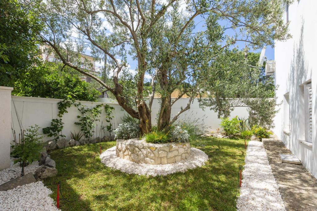 Exkluzivní nově zrekonstruovaný byt v malé rybářské vesnici Arbanija (ostrov Čiovo) nedaleko Trogiru. Byt má soukromý přístup přes oplocenou zahradu (olivový háj) 700 m2, terasu 120 m², 100 m od moře a oblázkové pláže. Interiér bytu má celkem 43 m2 2 ložnice (8 m2 jedna ložnice a 9 m2 druhá) a 2 koupelny. Byt má velkou zahradu a soukromé parkoviště a je obehnán vysokou kamennou zdí a přístup do bytu je zajištěn železnými dveřmi, které se zamykají. Zahrada je zvenčí skrytá a má naprosté soukromí. V jednotce je bezplatné Wi-Fi a na zahradě je gril a venkovní solární sprcha. Byt prošel kompletní rekonstrukcí v lednu 2021, vybaven novou kuchyňskou linkou, spotřebiči a koupelnovým nábytkem. Restaurovaný nábytek a umělecké obrazy dodávají tomuto bytu eleganci a teplo.