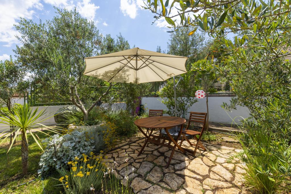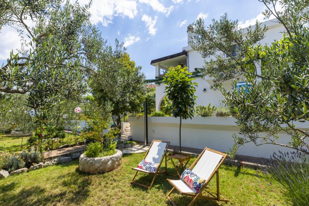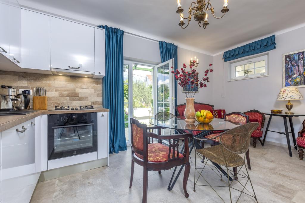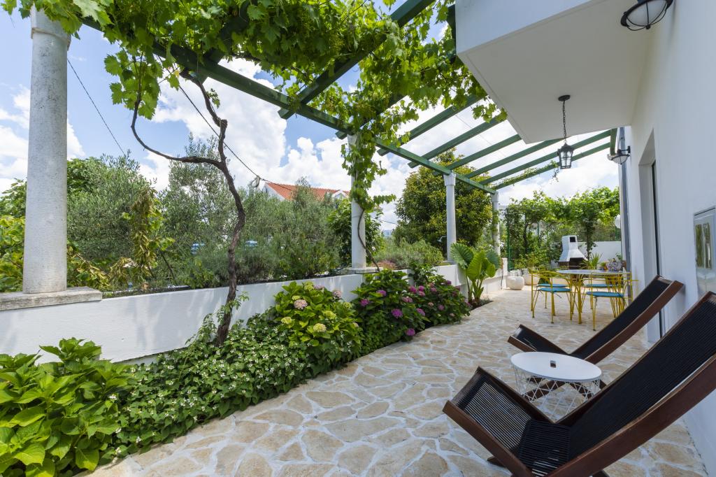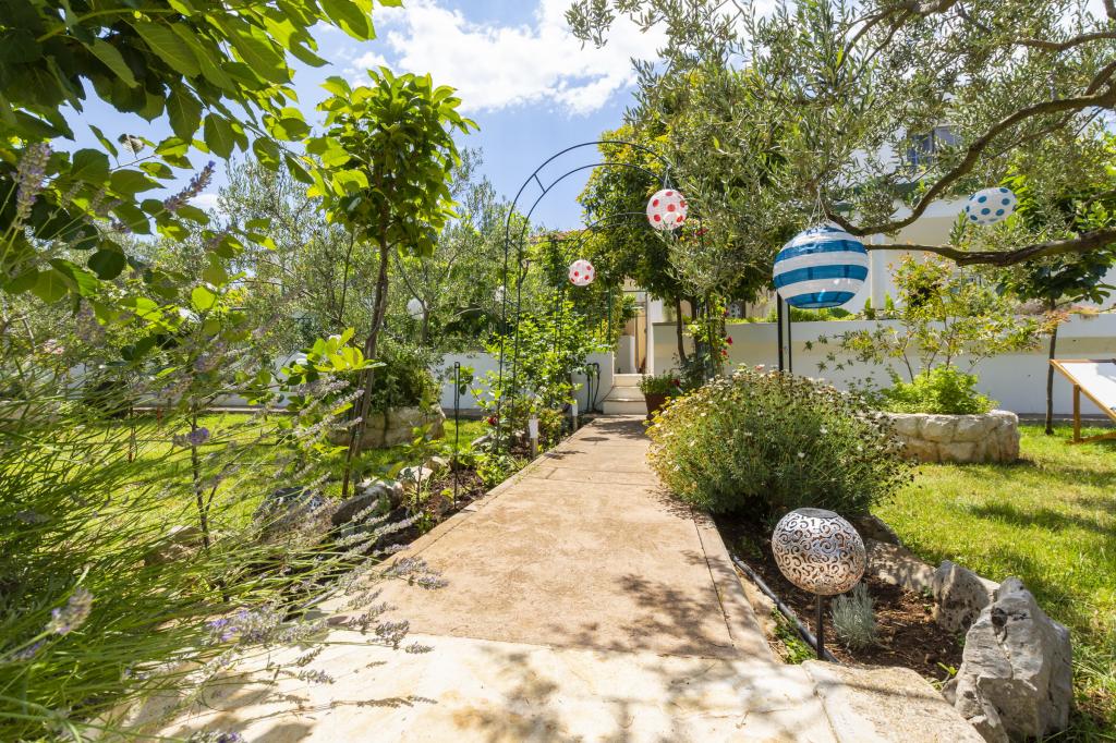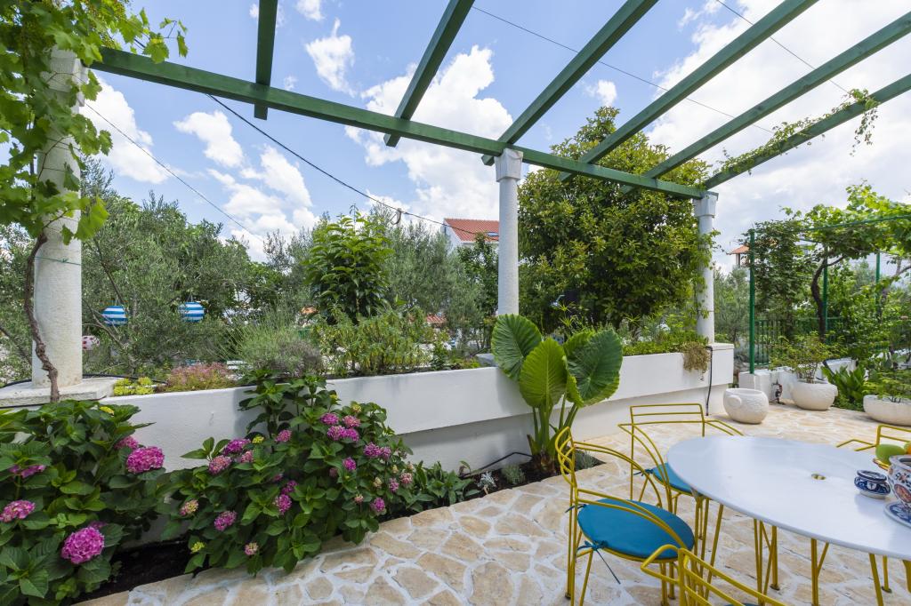 Exkluzivní nově zrekonstruovaný byt v malé rybářské vesnici Arbanija (ostrov Čiovo) nedaleko Trogiru. Byt má soukromý přístup přes oplocenou zahradu (olivový háj) 700 m2, terasu 120 m², 100 m od moře a oblázkové pláže. Interiér bytu má celkem 43 m2 2 ložnice (8 m2 jedna ložnice a 9 m2 druhá) a 2 koupelny. Byt má velkou zahradu a soukromé parkoviště a je obehnán vysokou kamennou zdí a přístup do bytu je zajištěn železnými dveřmi, které se zamykají. Zahrada je zvenčí skrytá a má naprosté soukromí. V jednotce je bezplatné Wi-Fi a na zahradě je gril a venkovní solární sprcha. Byt prošel kompletní rekonstrukcí v lednu 2021, vybaven novou kuchyňskou linkou, spotřebiči a koupelnovým nábytkem. Restaurovaný nábytek a umělecké obrazy dodávají tomuto bytu eleganci a teplo.
