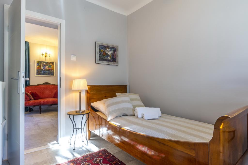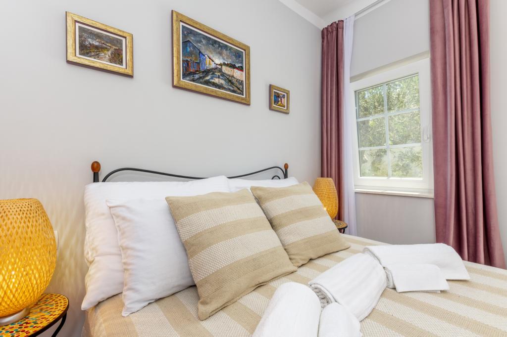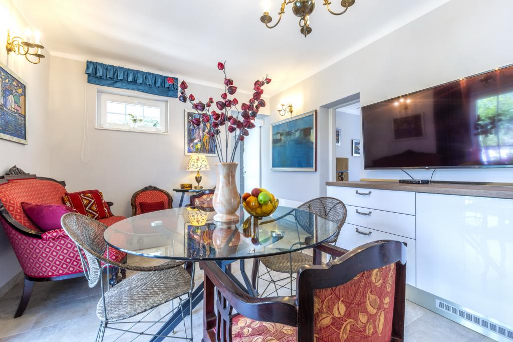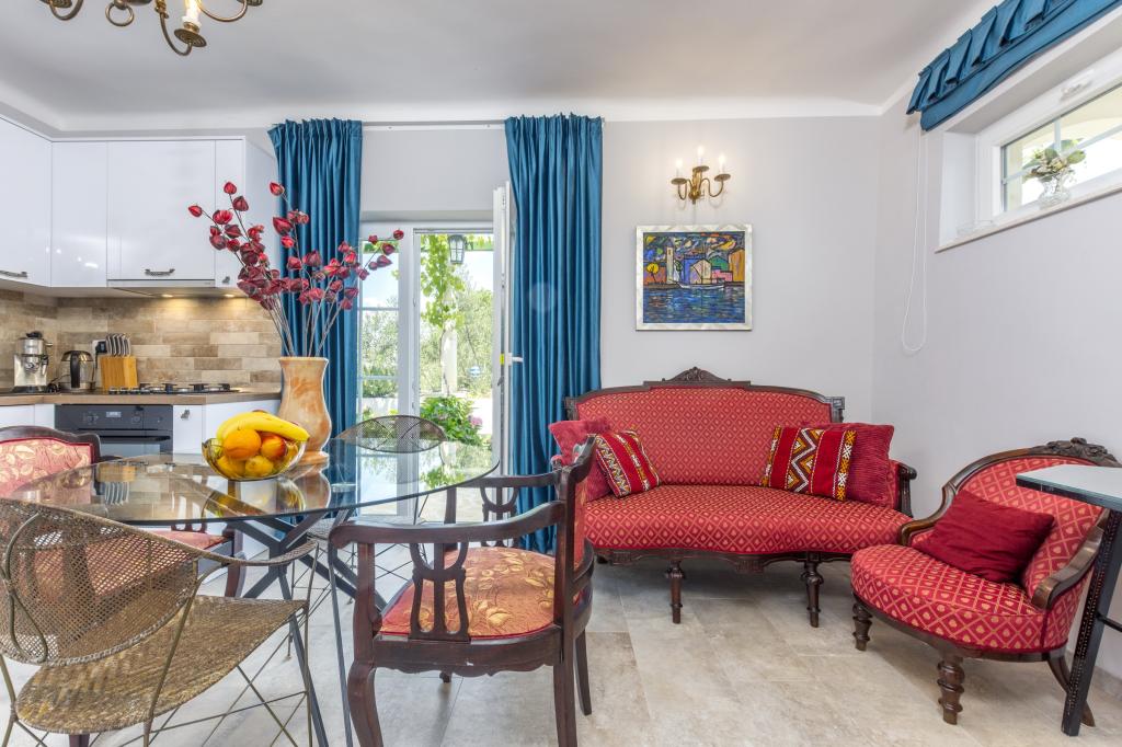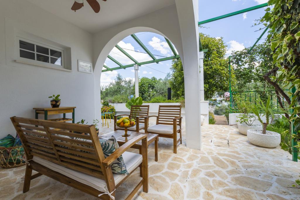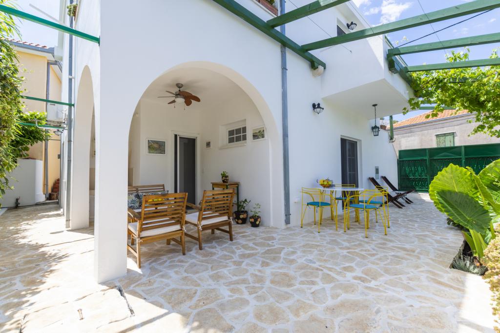 Exkluzivní nově zrekonstruovaný byt v malé rybářské vesnici Arbanija (ostrov Čiovo) nedaleko Trogiru. Byt má soukromý přístup přes oplocenou zahradu (olivový háj) 700 m2, terasu 120 m², 100 m od moře a oblázkové pláže. Interiér bytu má celkem 43 m2 2 ložnice (8 m2 jedna ložnice a 9 m2 druhá) a 2 koupelny. Byt má velkou zahradu a soukromé parkoviště a je obehnán vysokou kamennou zdí a přístup do bytu je zajištěn železnými dveřmi, které se zamykají. Zahrada je zvenčí skrytá a má naprosté soukromí. V jednotce je bezplatné Wi-Fi a na zahradě je gril a venkovní solární sprcha. Byt prošel kompletní rekonstrukcí v lednu 2021, vybaven novou kuchyňskou linkou, spotřebiči a koupelnovým nábytkem. Restaurovaný nábytek a umělecké obrazy dodávají tomuto bytu eleganci a teplo.