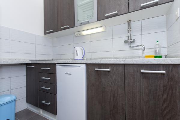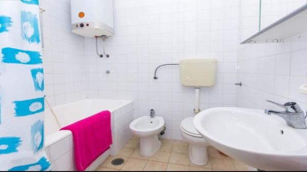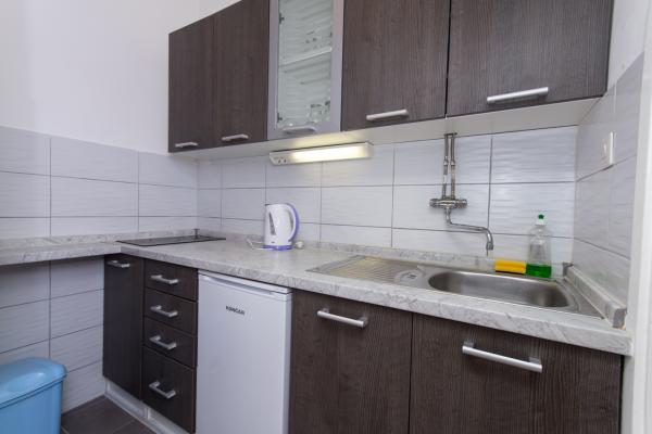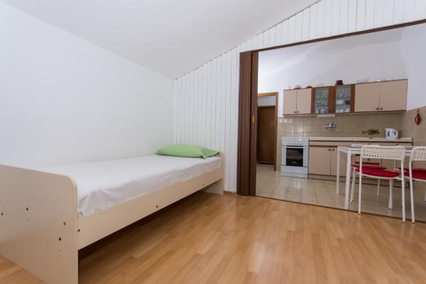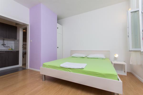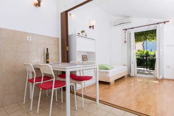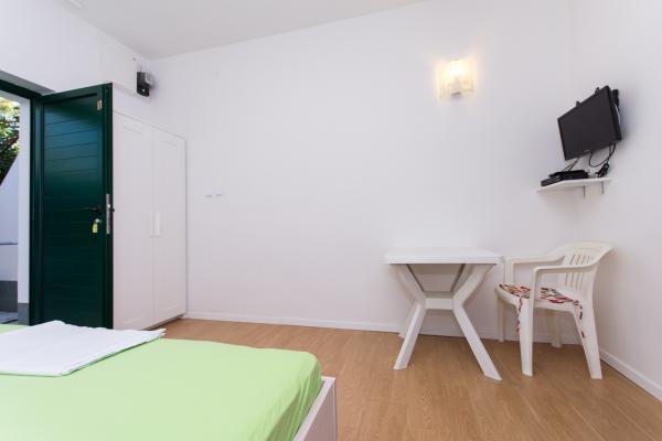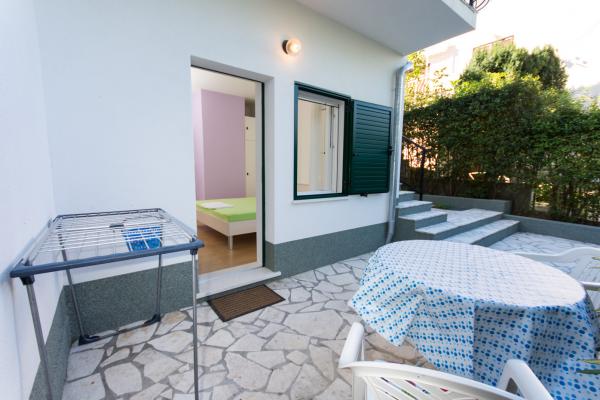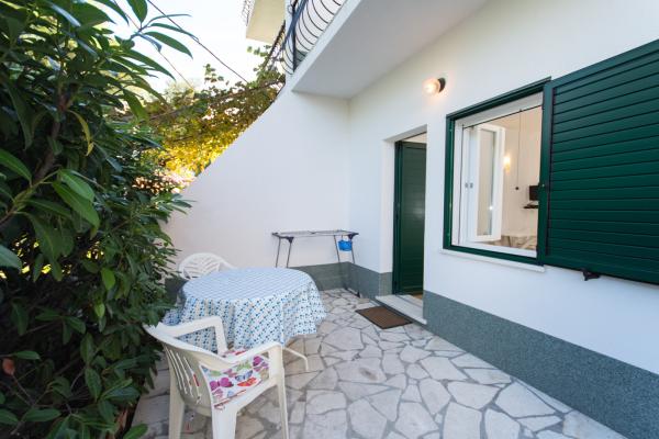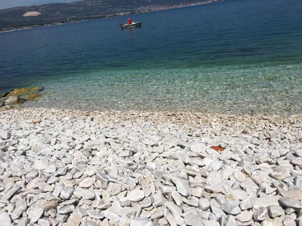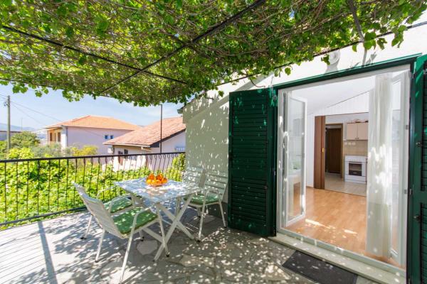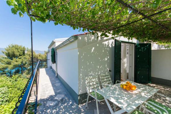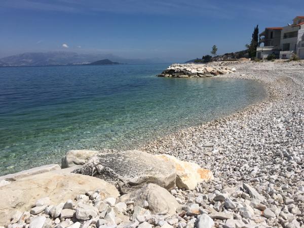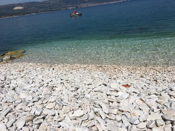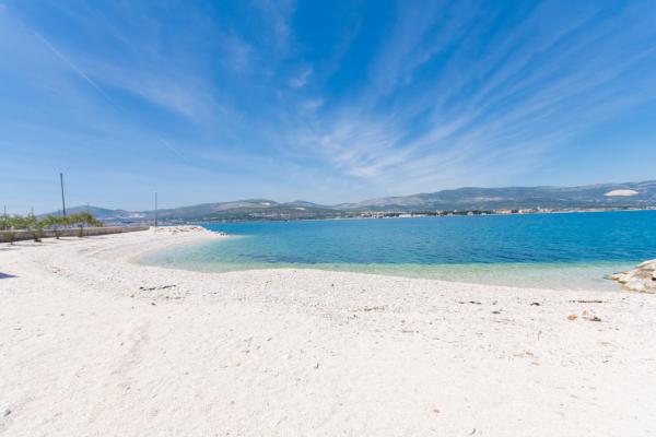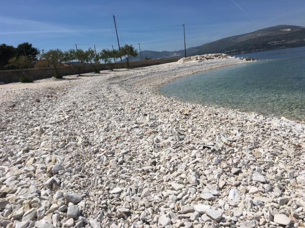 Plně vybavené a moderní apartmány, nábřeží. Dům se nachází v klidném prostředí v obci Arbanija na ostrově Čiovo, 4 km od Trogiru. Budova byla renovována v loňském roce, a učinil novou fasádu, střechu a nová okna. Čiovo je spojen s mostem s Trogir a pevninu. V areálu se nachází 40 m od moře a je obklopen zelení a borovicemi. Oblázková pláž je vzdálena 90 m od domu, skalnatá pláž je vzdálena 40 m od domu. Mezi pláží a domem je hustý borový les.