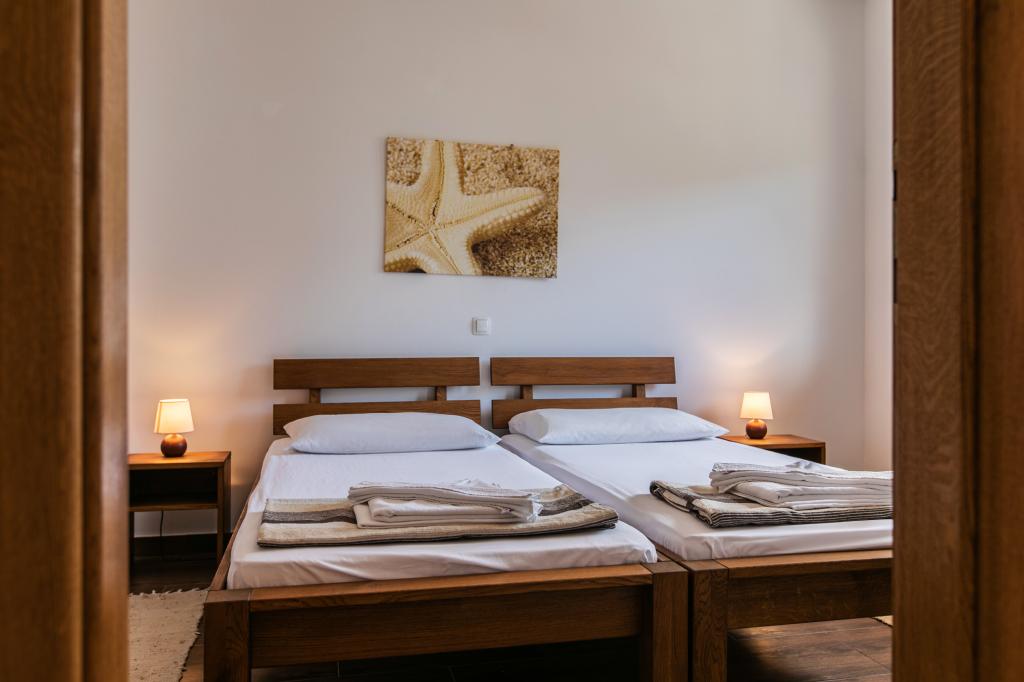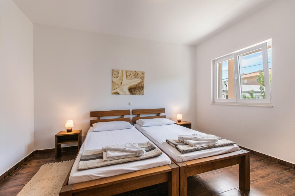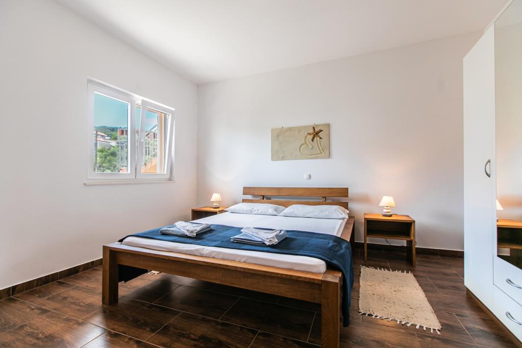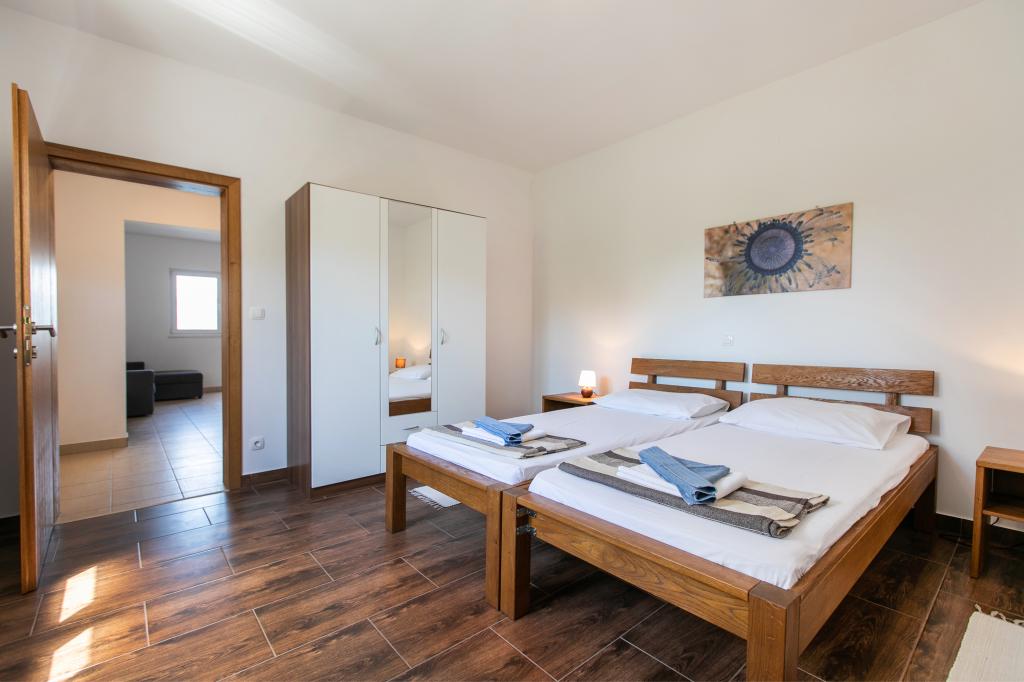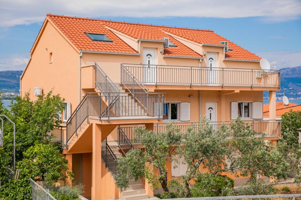 Nacházíme se v Arbaniji na ostrově Čiovo. Apartmány jsou nově postavené v domě umístěném v první řadě k moři. Ve dvoře je k dispozici letní kuchyň s krbem, kterou mohou využívat hosté. Apartmány jsou pohodlné a moderně vybavené. Apartmány 4 2 se skládají ze dvou ložnic a rozkládací pohovky v obývacím pokoji. Apartmán 2 2, který se nachází v podkroví domu, má jednu ložnici a rozkládací pohovku v obývacím pokoji. Všechny apartmány vedle koupelny mají samostatnou malou toaletu. Ve všech apartmánech je k dispozici bezplatné Wi-Fi. Strávte s námi rodinnou dovolenou!
