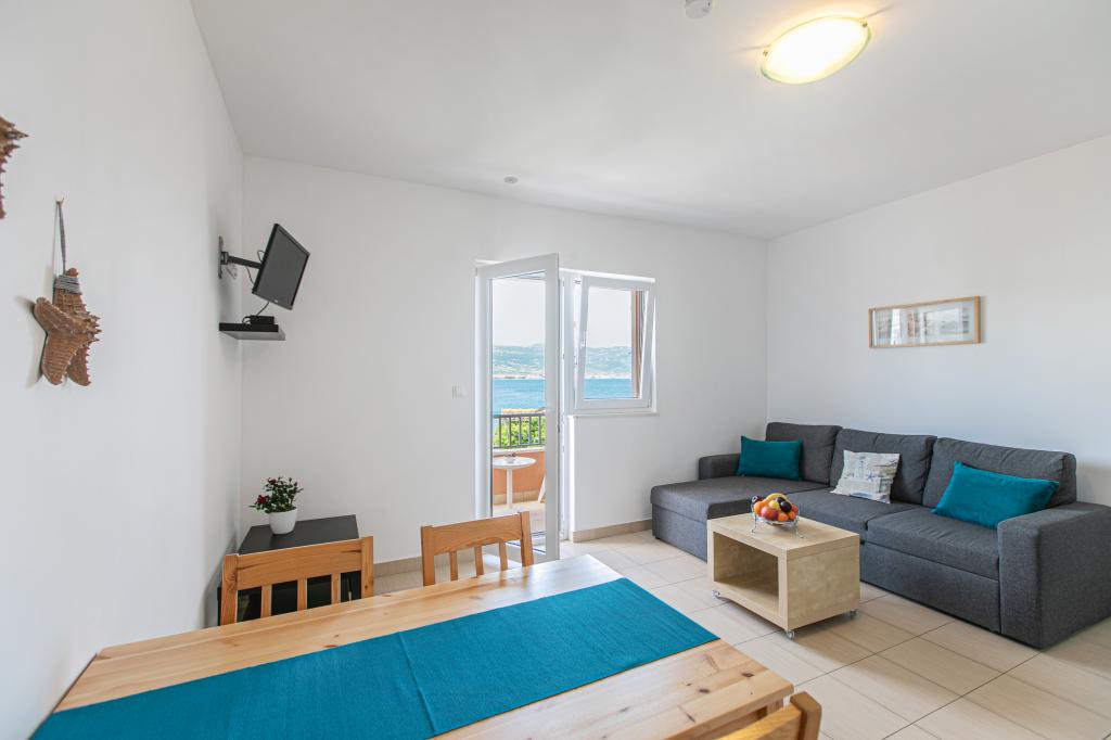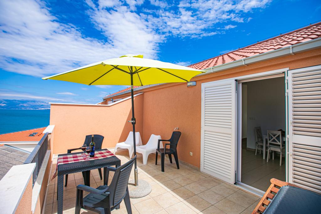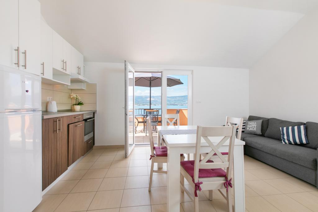 Pěkně zařízený byt s velkou terasou a krásným výhledem na moře. Byt je přímo u moře s pěknou pláží a klidným prostředím. Velmi přátelští hostitelé. Těšíme se na příští rok!