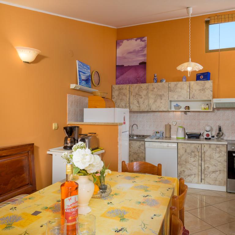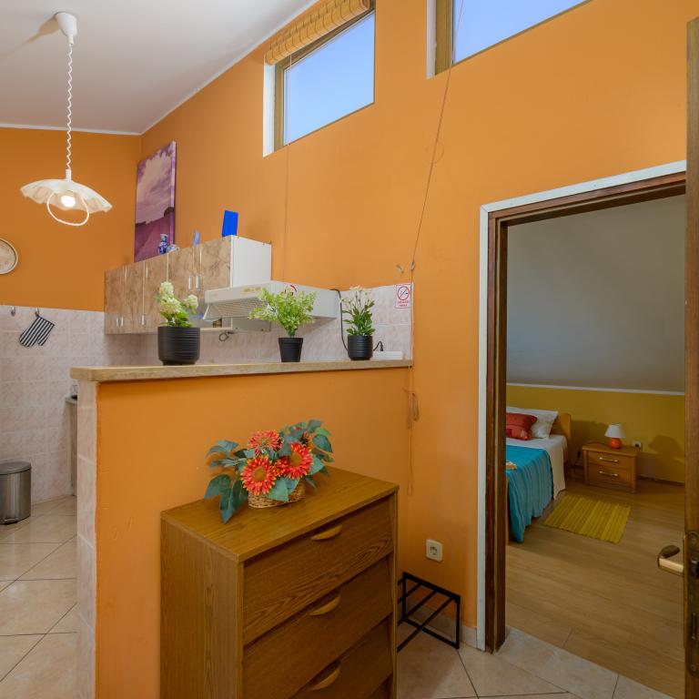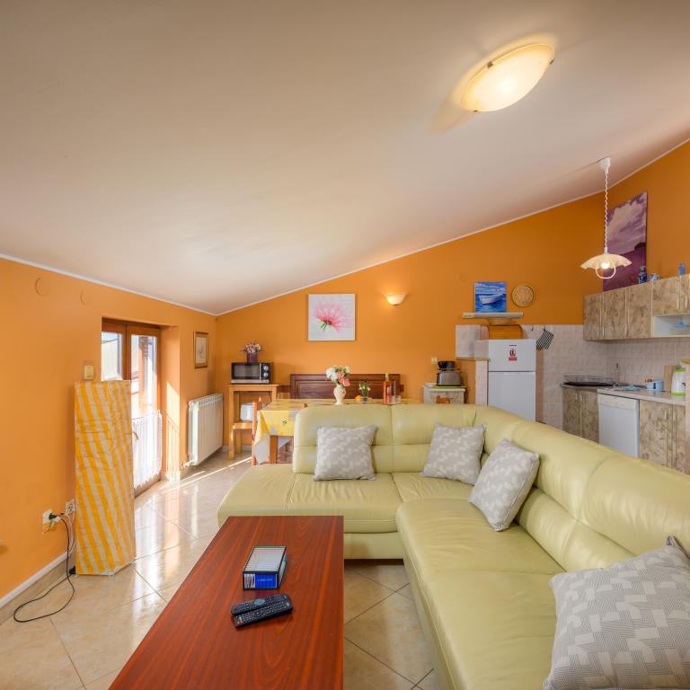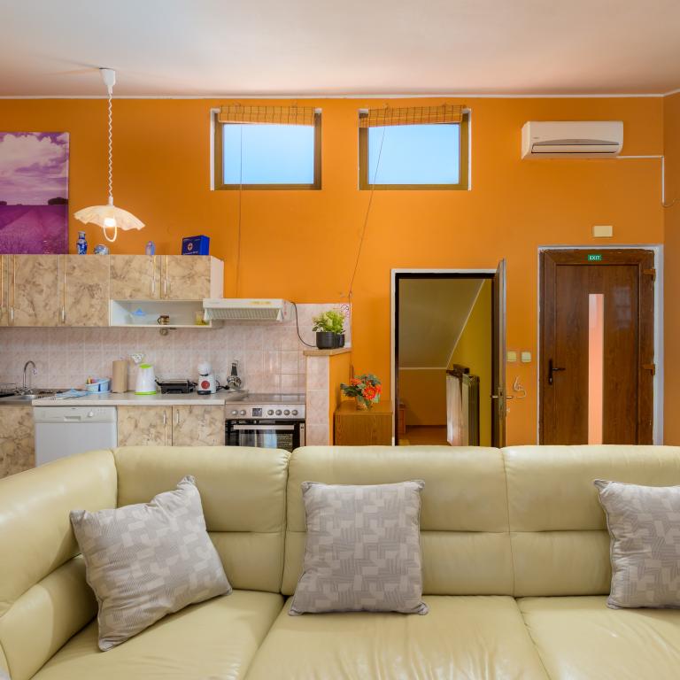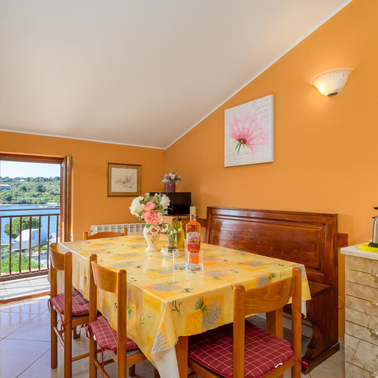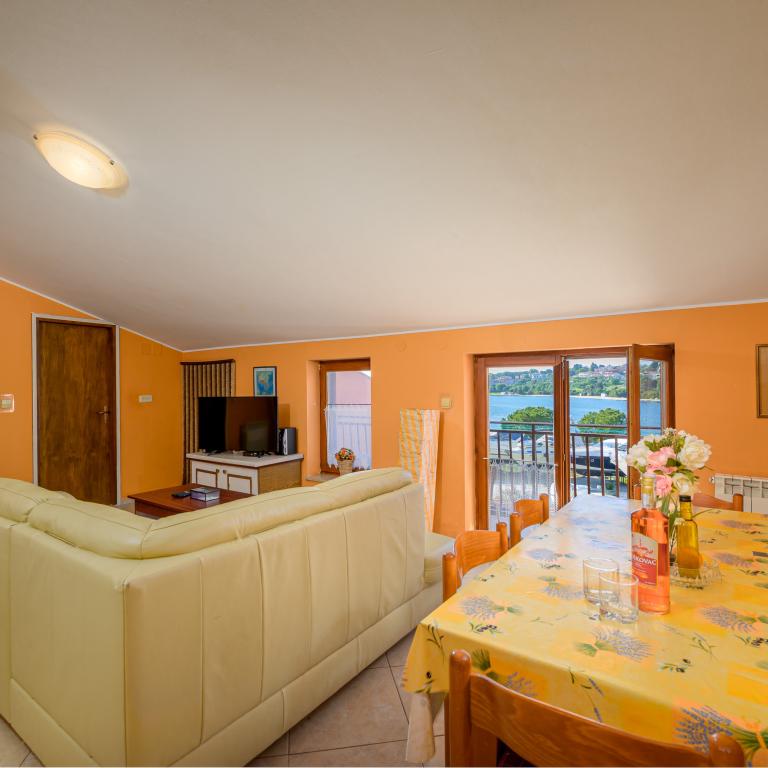 Apartmán se nachází v první řadě u moře v prvním patře s terasou a nádherným výhledem na modré moře a oblohu. Nachází se v klidné části Banjole, vesnice Volme, tiché a klidné, v blízkosti veškeré občanské vybavenosti. 5 minut na pláž a 15 minut do hotelu na druhé straně pobřeží. Nedaleké cyklostezky vedou do Národního parku Kamenjak. Pula je vzdálená tři kilometry a Premantura 4 kilometry.