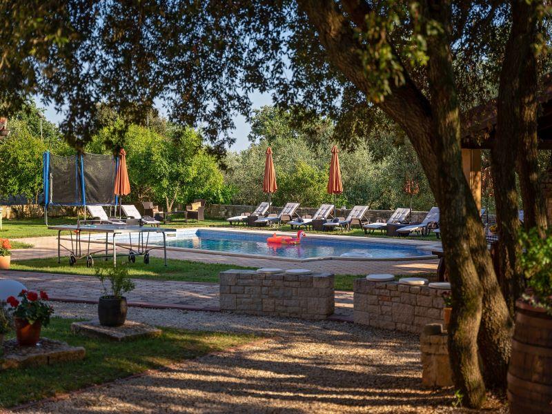 Apartmány Barboska se nacházejí na západním pobřeží istrijského poloostrova v klidné malé vesničce Betiga, 25 km severně od Puly. Dům je vzdálen 5 minut od nejbližší pláže autem, asi 1200 m. V bezprostřední blízkosti 100 m jsou 3 místní restaurace, které podávají místní tradiční istrijskou kuchyni. Rodiny s dětmi doporučují návštěvu parku dinosaurů Paleo, který je od našeho ubytování vzdálený pouhé 3 km. Apartmány mají velkou zahradu skládající se z: dvora, soukromého parkoviště, venkovního bazénu 10x5 m, soukromého tenisového kurtu, travnatého badmintonového a / nebo volejbalového hřiště, venkovního a vnitřního grilu, tranpolinu pro děti, bezdrátového internetu zdarma, který pokrývá celý dům, stolu na kulečník, stolní tenis, šipky a deskové hry. Zařízení se nachází daleko od dopravních a turistických davů. Je obklopen přírodní vegetací typickou pro istrijské klima podél promenád a cyklostezek, což z našeho zařízení dělá ideální místo pro příjemnou relaxační dovolenou s rodinou a přáteli.