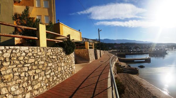 Nově zrekonstruované a moderní apartmány, které se nachází přímo u moře v klidné části města Rab. Apartmány jsou vhodné zejména pro rodiny s dětmi, protože v blízkosti krásné písčité pláže. Se zařízením se nachází nábřežní promenádu, která vás zavede celou cestu do města Rab. Všechny apartmány se skládají z velkého obývacího pokoje spojeného s kuchyňským koutem, dvě ložnice, koupelna se sprchovým koutem a WC a drobný doplňkový WC, terasa 9m2. Apartmány jsou vybaveny kávovarem, zatímco apartmány s 4 obsahující myčkou na nádobí a trezorem. Zabezpečené parkování ve dvoře a možnost využití společný venkovní grilování na venkovní zahrádce s výhledem na moře.