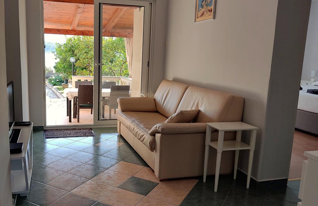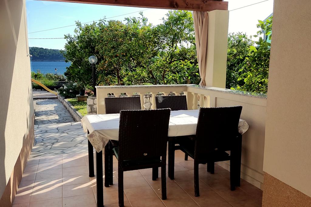 Apartmány 30 m od moře, kotviště pro loď zdarma. Dům ve vlastnictví rodiny Snježana a Slobodana (Bobo) Frankić se nachází v Barbat na ostrově Rab, 4 km od města Rab a 6 km od trajektu. Byla postavena jako jednopatrová budova s pěti byty k pronájmu, společenskou místností pro zábavu a jedním apartmánem, kde bydlí hostitelé. Dům se nachází v klidné oblasti, v krásné vilové čtvrti, je jen 30 metrů od moře a je obklopený parkovištěm, květinovou zahradou, ovocným sadem, slunnou terasou s lehátky, hřištěm pro děti i dospělé a společnou terasou. K dispozici je pět apartmánů pro 4 osoby: Apartmán 1, Apartmán 3, Apartmán 4, Apartmán 5 a jeden apartmán pro 2 osoby: Apartmán 2. Dva apartmány pro 4 osoby: Apartmán 1, Apartmán 3 a jeden apartmán pro 2 osoby: Apartmán 2 jsou se nachází v přízemí a dva apartmány pro čtyři osoby: Apartmán 4, Apartmán 5 v prvním patře (hostitelé a pronajatý Apartmán 5 sdílejí terasu). Všechny apartmány mají klimatizaci. Wifi zdarma