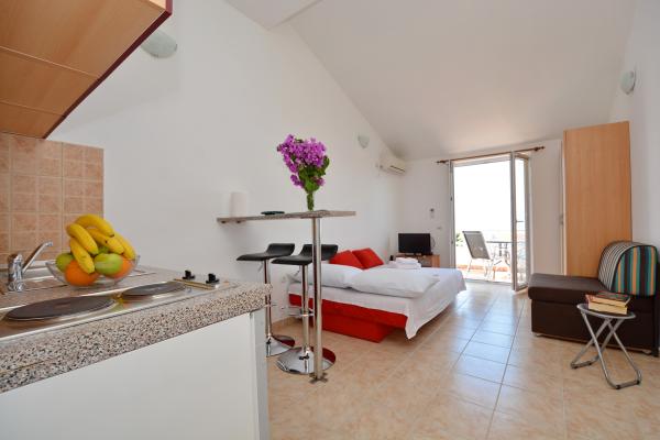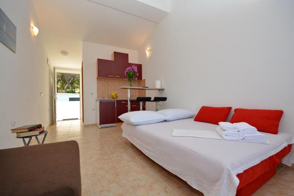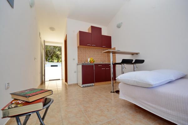 Apartmánový dům se nachází v klidné zátoce Basina na ostrově Hvar, 50 metrů od moře se 2 apartmány, parkoviště. Studio apartmán (2 1) - 25 m2, samostatný vchod, přízemí, balkón 4 m2, obývací pokoj s kuchyňským koutem a WC. Apartmán (4 2) - 50 m2, samostatný vchod, přízemí, terasa 30 m2, BC, obývací pokoj s kuchyňským koutem, 2 ložnice a WC. Bay Basin se nachází v 6 km od Vrboska (2 km pěšky) a 9 km od Starého města. Mísa se dostanete trajektem ze Splitu do Stari Grad, nebo z Drveniku do Sućuraj. Domy v zálivu se nachází podél pobřeží a životní prostředí je zelená a borovice lesní. Nebyly zjištěny žádné závažné ubytovací zařízení a přeplněnosti pláže pryč. Mimořádně vhodný pro klidnou dovolenou. Proč Basina? Na půli cesty od Stari Grad do Jelsa, na severní straně ostrova, se nachází v krásné zátoce, Stari Grad. Obklopen borovým lesem, jehož padák zpívat s letní vánek, takže nejteplejší letní dny pohodlné zůstat na krásných plážích, tím pravým místem pro odpočinek a relaxaci.