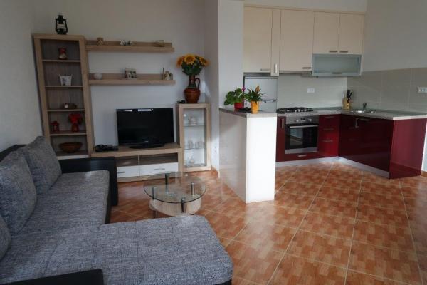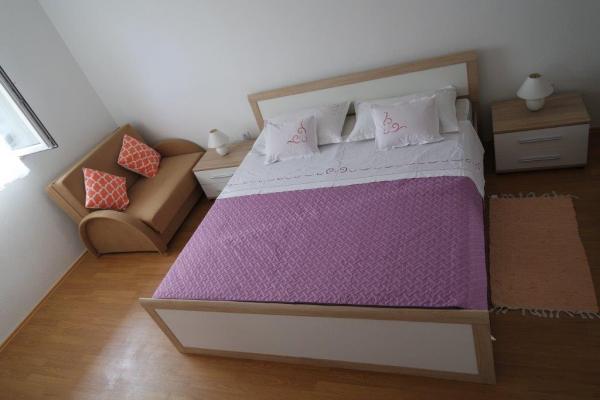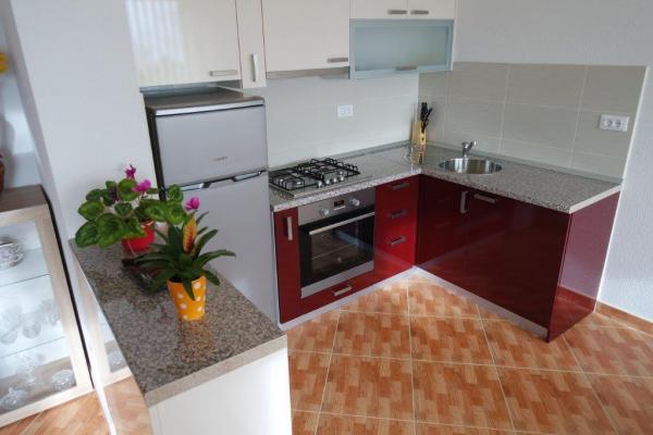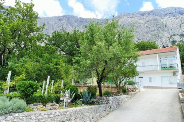 Byt Ana je součástí dům se nachází v malé vesničce Bast se nachází na úpatí jižních svazích přírodního parku hory, obklopený přírodní krásy, panoramatický výhled na moře a ostrovy Brač a Hvar, 10 km západně od města, 2, 5 km východně od městečka Baška Voda. Byt je zcela nový, plně vybavené a moderní, 60 m2, skládající se z ložnice s manželskou postelí a rozkládací pohovkou, obývacím pokojem s rozkládací pohovkou, kuchyně, jídelny a koupelny. Byt je klimatizován, má samostatný vchod, parkoviště, satelitní TV, internet, velká terasa s grilem. Výjimečně pohostinnost v klidném a příjemném prostředí s krásným výhledem na moře a ostrovy učiní vaši dovolenou v bytě Ana příjemný a nezapomenutelný.