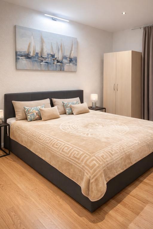Plně vybavený a kompletně zrekonstruovaný apartmán, který se nachází v první řadě k moři. Objekt se nachází 10 metrů od pláže. V objektu je kavárna, restaurace, kosmetický salon, market, obchod se suvenýry a směnárna. Budova je 40 metrů od přístavu