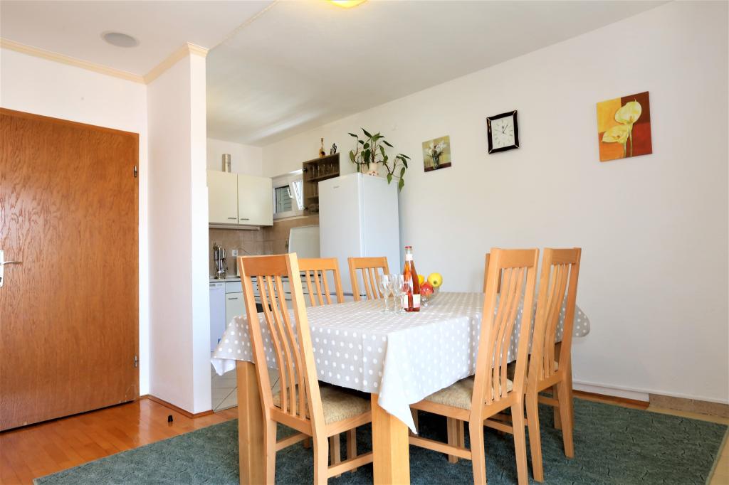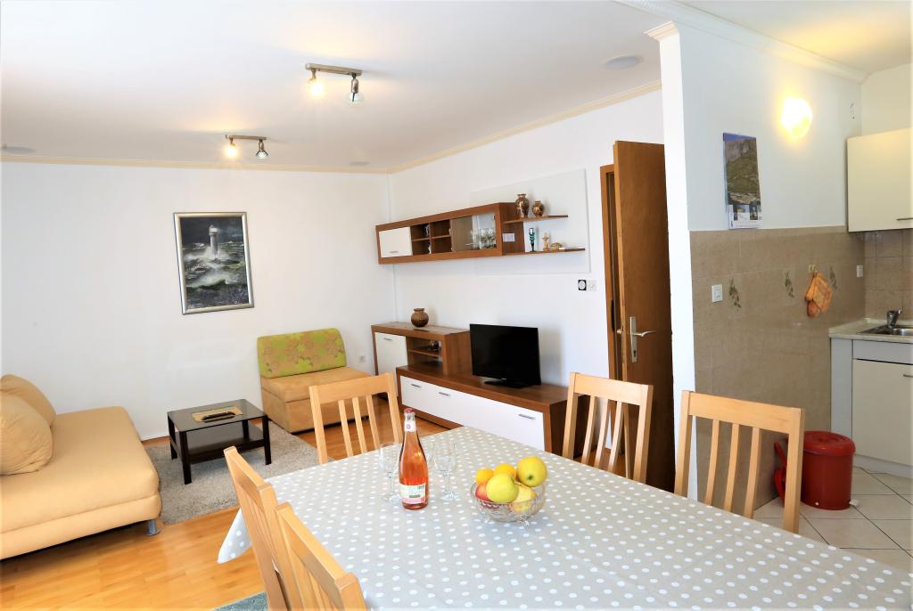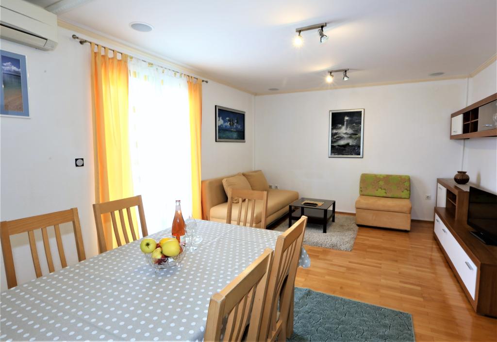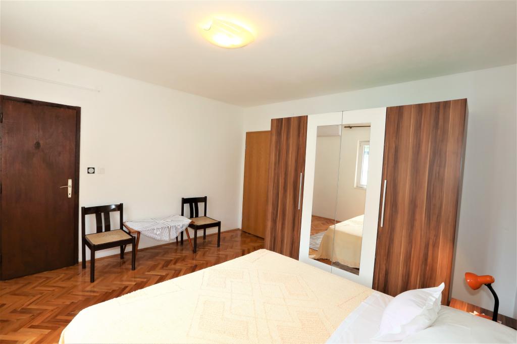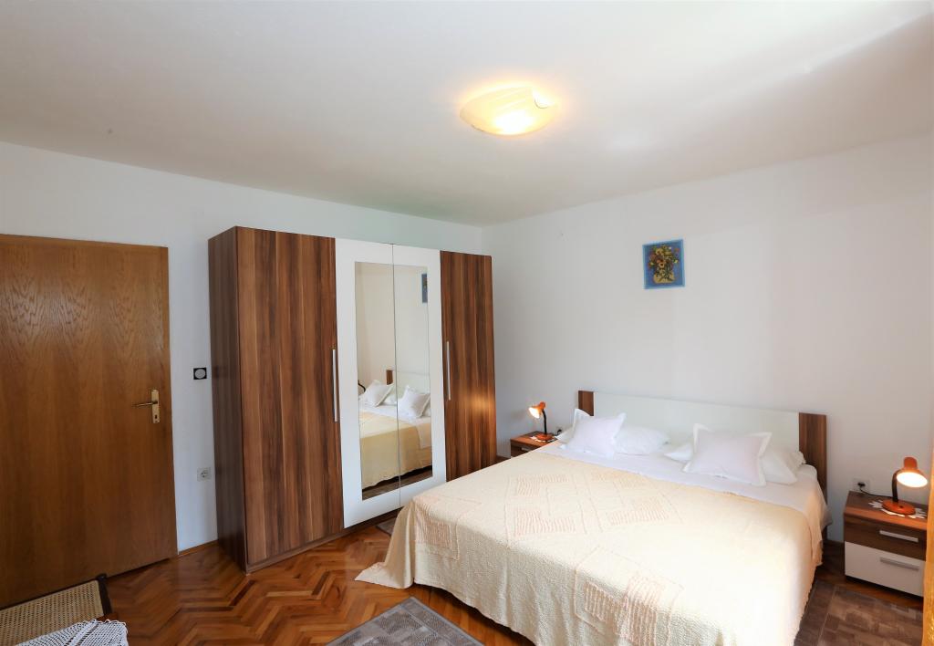 Byt se nachází v prvním patře rodinného domu, 300 metrů od moře, centra, pláže. V klidné části Baška Voda. Má vlastní parkování ve dvoře rodinného domu, které je zahrnuto v ceně. Byt je plně vybaven veškerým potřebným zařízením pro pohodlný pobyt. Apartmán se skládá ze tří dvoulůžkových pokojů, kde každý pokoj má vlastní koupelnu. Byt má také kuchyň, obývací pokoj a balkon a je plně klimatizovaný. Celková plocha bytu je 120m2.