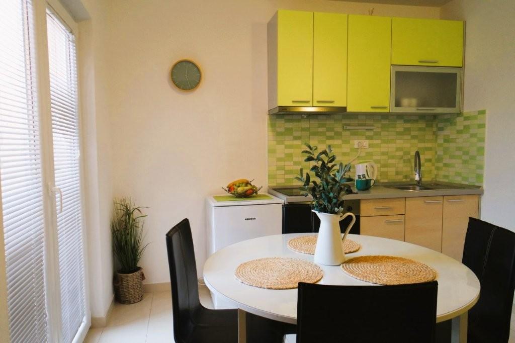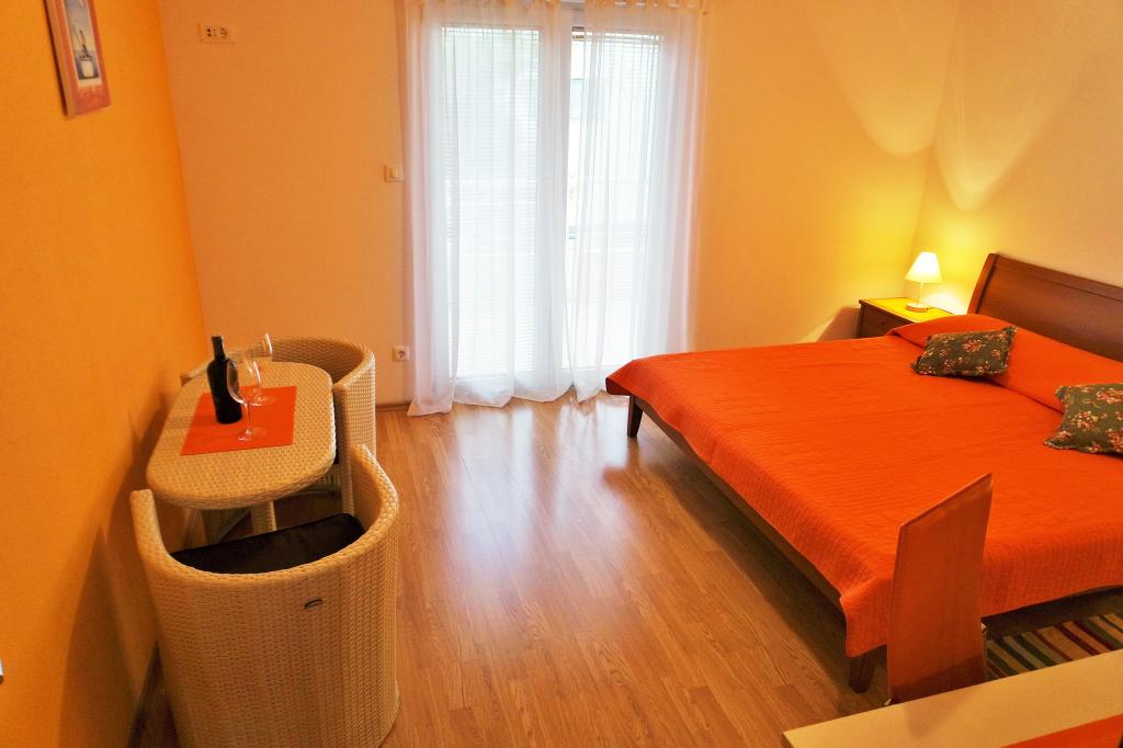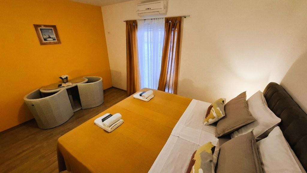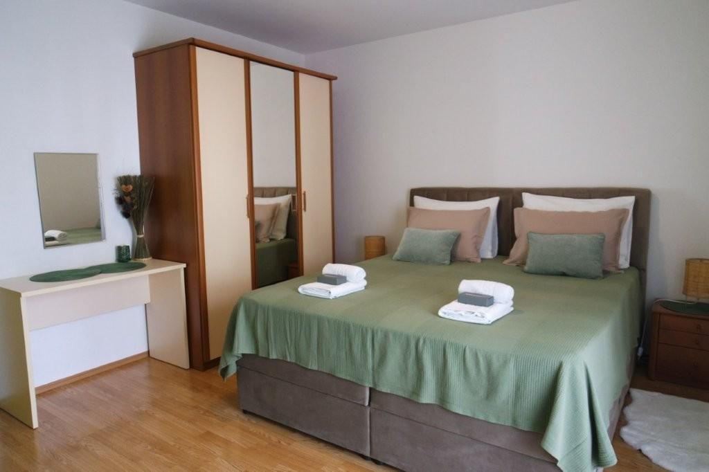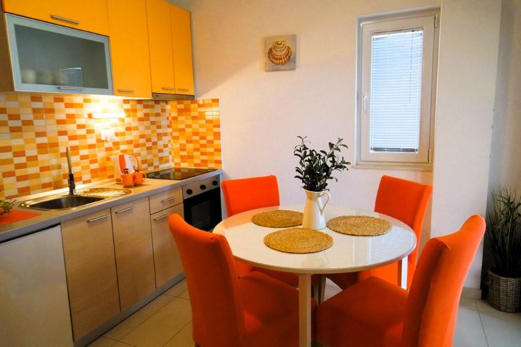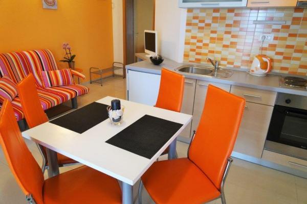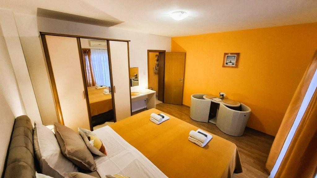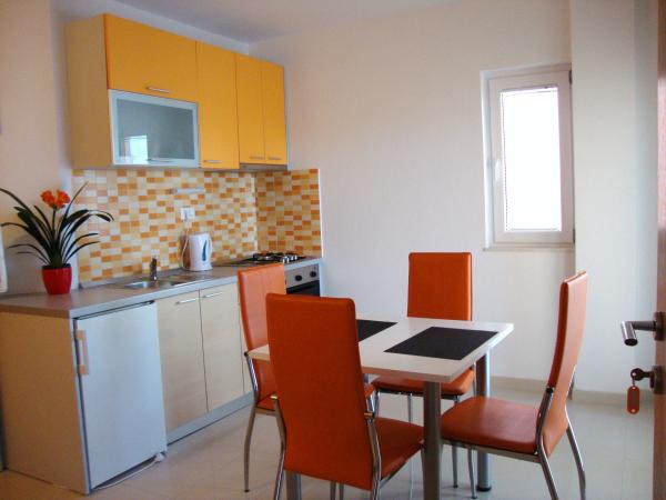 Moderně vybavené apartmány Harmonia jsou ideální volbou pro pohodlnou rodinnou dovolenou nebo pro páry hledající pohodlné ubytování v blízkosti pláže. Asi 200m od pláže Nikola, v atraktivní oblasti Baška Voda a nedaleko od centra s krásným bočním výhledem na moře a pohoří Biokovo. Nabízíme ubytování v zelených a oranžových apartmánech pro 2 dospělé s 2 malými dětmi a v tyrkysovém apartmánu pro 2 dospělé s ev. 1 dítě. Každý apartmán má rozlohu 40 m2, má velkou ložnici, obývací pokoj s plně vybavenou kuchyní, stolem a židlemi a rozkládací pohovkou, koupelnu a terasu. Zelené a oranžové apartmány se nacházejí v prvním patře rodinného domu a mají velké balkony s bočním výhledem na moře, zatímco tyrkysový byt se nachází v suterénu domu bez výhledu na moře, s velkou terasou a křesly v salonku. Každý apartmán je plně vybaven, vyzařuje čistotu a světlé barvy, díky nimž se budete cítit pohodlně a budete mít příjemnou dovolenou.