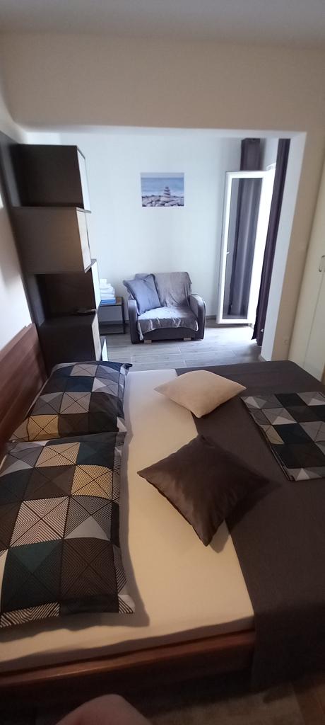 Objekt se nachází ve druhé řadě u moře, 2 minuty chůze od centra, stejně jako u první pláže. Aplikace Studio 2 1 má základní postel a křeslo a Studio 2 2 má základní postel a 2 křesla. Studio aplikace pojme 2 osoby, studio app 2 1 pojme 2 dospělí a 1 dítě, 2 2 dva dospělí a 1 až 2 děti. Parkování zajištěno, umístěné před domem. VÍTEJTE!!!