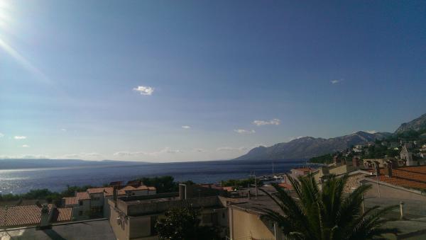 Kompletně zařízené studio v klidné části městečka Baška Voda (ne hlavní silnice). Na pláži je 3 minuty chůze od centra města pouhých 5 minut. Nedaleko se nachází sportovní zařízení (tenis, fotbal, basketbal, bowling...), pošta, obchody, směnárna a cestovní kanceláře.
