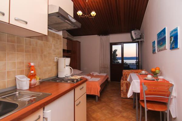 Úžasní lidé, srdeční, profesionální, umělecké duše Apartmány jsou čisté, uklizené, s nádherným výhledem a za rozumné ceny. Jsou na takovém místě, že i když je +40 a bez klimatizace je příjemně. Pláž je vzdálená dvě minuty. Blízko je také Baška voda a Brela. Nejsou tu žádné kopce a jen pár schodů (které mají senzorové světlo, nenechte se tím vyděsit, není to tak těžké, jak by se mohlo zdát. Již jsme doporučili přátelům... Určitě přijedeme znovu