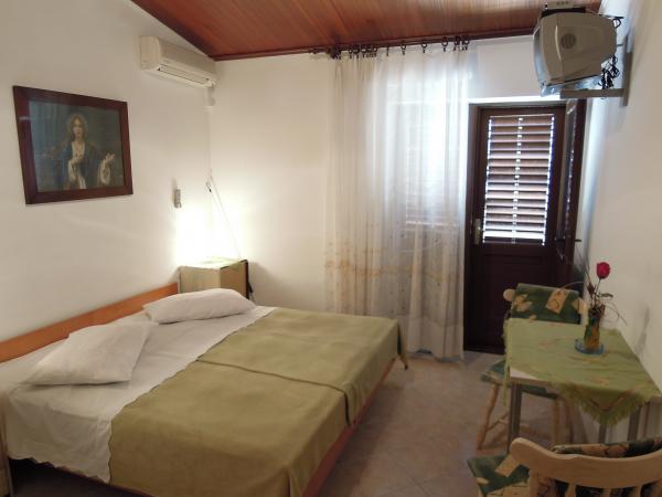 Studio je velmi úhledné. Hostitelé jsou skvělí, přivítali nás domácí pálenkou a ovocem, které osobně pěstují. Studio vybavené vším, co potřebujete k pobytu na moři, má z balkonu nádherný výhled na moře, což jsme hodně využívali, protože jsme tam zůstali s 11měsíčním miminkem. Dokonce jsme dostali zdarma postýlku pro naše dítě. Všechna doporučení.