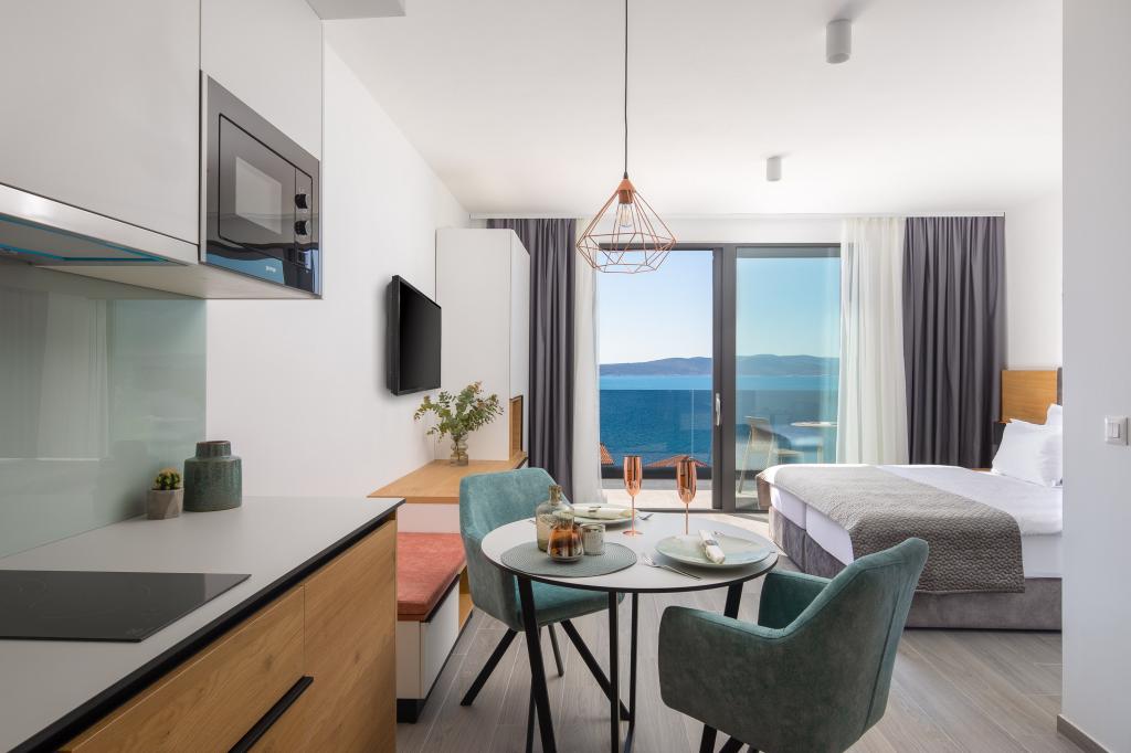 Nově otevřené apartmány s krásným výhledem se nachází v Bašce Vodě a jen 40m od nejbližší pláže a 100m od centra. Apartmány jsou moderně vybavené bezplatným internetem, terasou a venkovním bazénem s lehátky. Každý apartmán je klimatizovaný a má velkou satelitní TV s plochou obrazovkou, trezor, pohovku a plně vybavenou kuchyň s lednicí, sporákem, mikrovlnnou troubou, rychlovarnou konvicí a kávovarem. Ve všech najdete také vlastní koupelnu s fénem a toaletními potřebami.