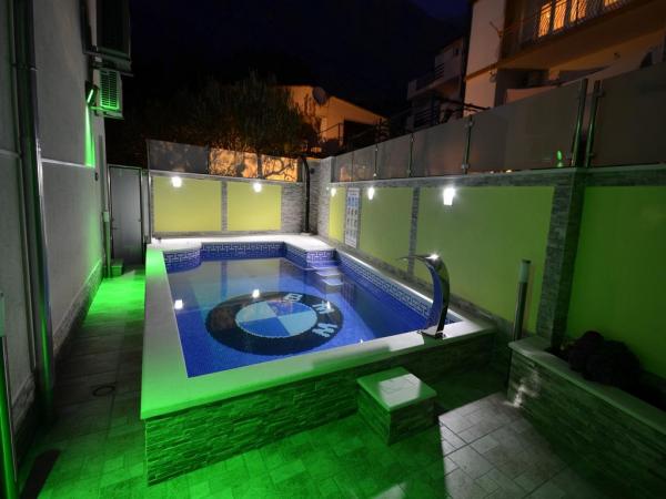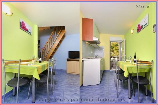 Pro více fotografií a informací naleznete na našich webových stránkách .... www.apartmani-hudovernik.com .... Naše rodina má dlouhou tradici v oblasti cestovního ruchu a turistických služeb, především ubytování, ale také neocenitelné teplo pohostinnosti, ve kterém mnozí byli přesvědčeni, , Apartmány se nacházejí v prvním a druhém patře rodinného domu v klidné části městečka Baška Voda, ale jen 300 metrů od pláže. Nabízíme čtyři příjemné prostředí a prostorné apartmány DELUXE je venkovní vyhřívaný bazén a jsou plně vybaveny vysokých standardů dnešního moderního pojetí cestovního ruchu. Všechny apartmány jsou dvoulůžkové s možností využití přistýlky (2 2). V přední části domu je parkoviště pro vaše vozidlo, a centrum Baška Voda a místní pláže jsou vzdálené 300 metrů od hotelu, stejně jako podpůrných zařízení, jako jsou obchody a restaurace.