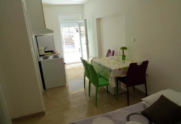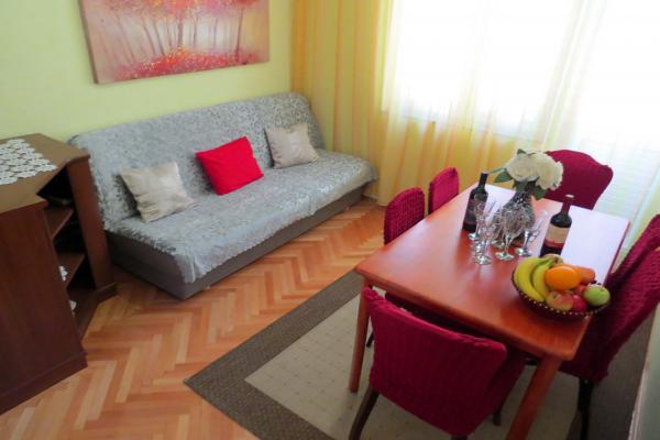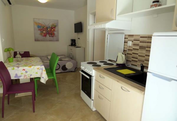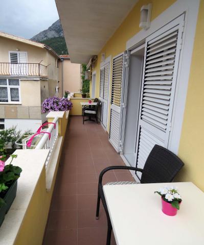 Moderní apartmány se nacházejí v centru městečka Baška Voda, v blízkosti pláže Nikolina. V okolí jsou obchody, restaurace, bary a další zařízení pro příjemné chvíle. Každý pokoj je klimatizovaný a má TV a balkon (A6).