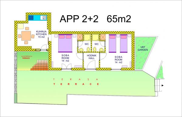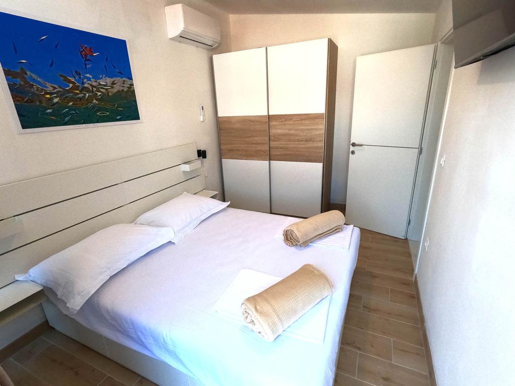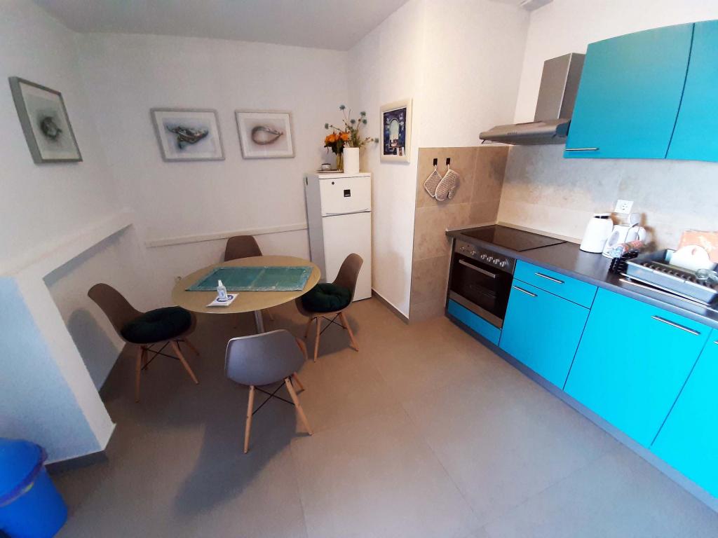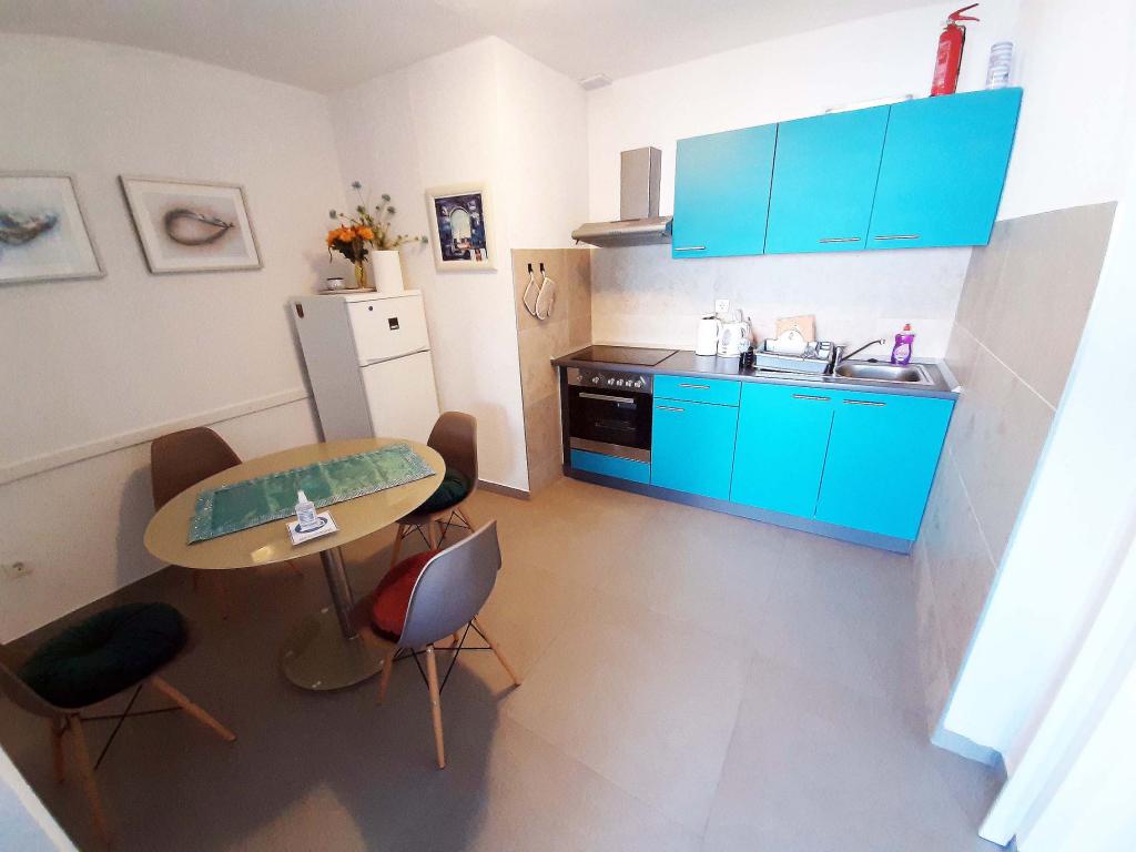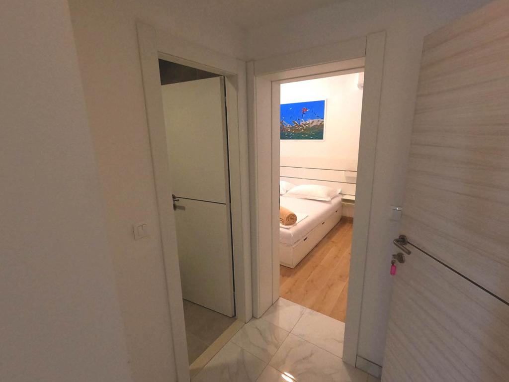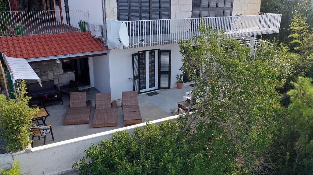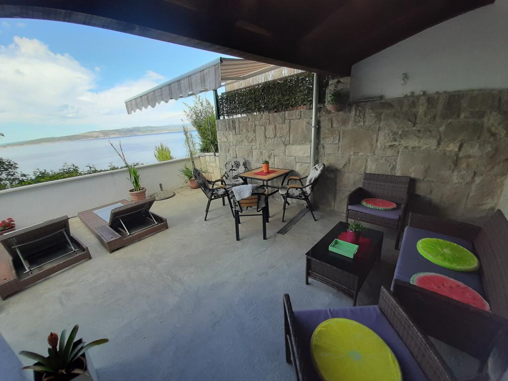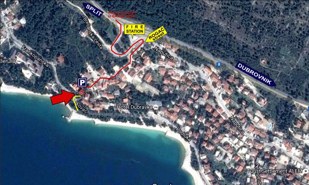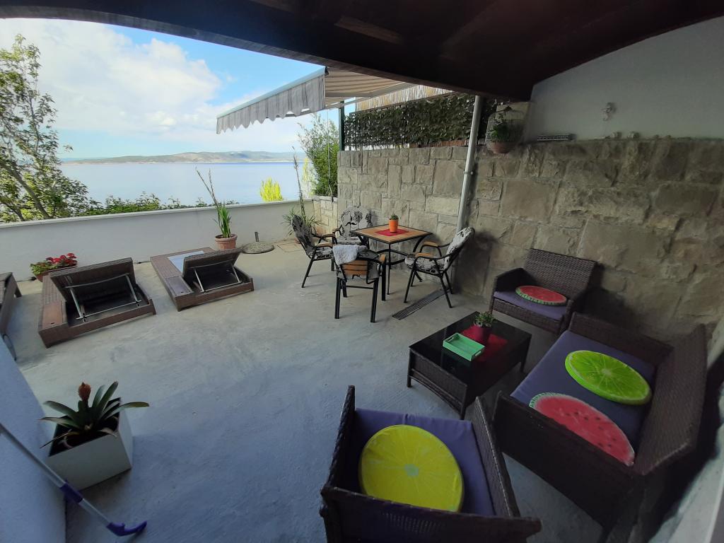 Nově zrekonstruovaný a plně vybavený byt v klidné oblasti mezi Baškou Vodou a Brela, která se nachází v první řadě u moře, nad krásnou pláží. Objekt se nachází 10 minut chůze (cca 500 m) od centra obou míst. Velká terasa s baldachýnem a výhledem na moře, 2 dvoulůžkové ložnice, dvě koupelny a kuchyň s přístupem na terasu. Všechno nové. Byt se nachází v samostatném patře se samostatným vchodem, velká zahrada oddělená od všech sousedů. Soukromé parkování ve stínu těsně nad domem.
