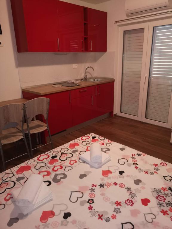 Apartments Soni se nachází v Bašce Vodě, 100–150 metrů od centrální pláže Nikolina, a nabízí bezplatné Wi-Fi a bezplatné soukromé parkoviště před samotnou budovou. Mezi oblíbené zajímavosti v okolí patří kostel sv. Lovre, kostel sv. Mikuláše, socha sv. Mikuláše a Malakologické muzeum. Nachází se téměř v centru, přesto v klidném prostředí. Studiové apartmány pro dvě osoby Red, Orange a Yellow se nacházejí v prvním patře a každý má balkon. Family 1 a Family 2 se nacházejí v přízemí a mají malou terasu s posezením v přední části.