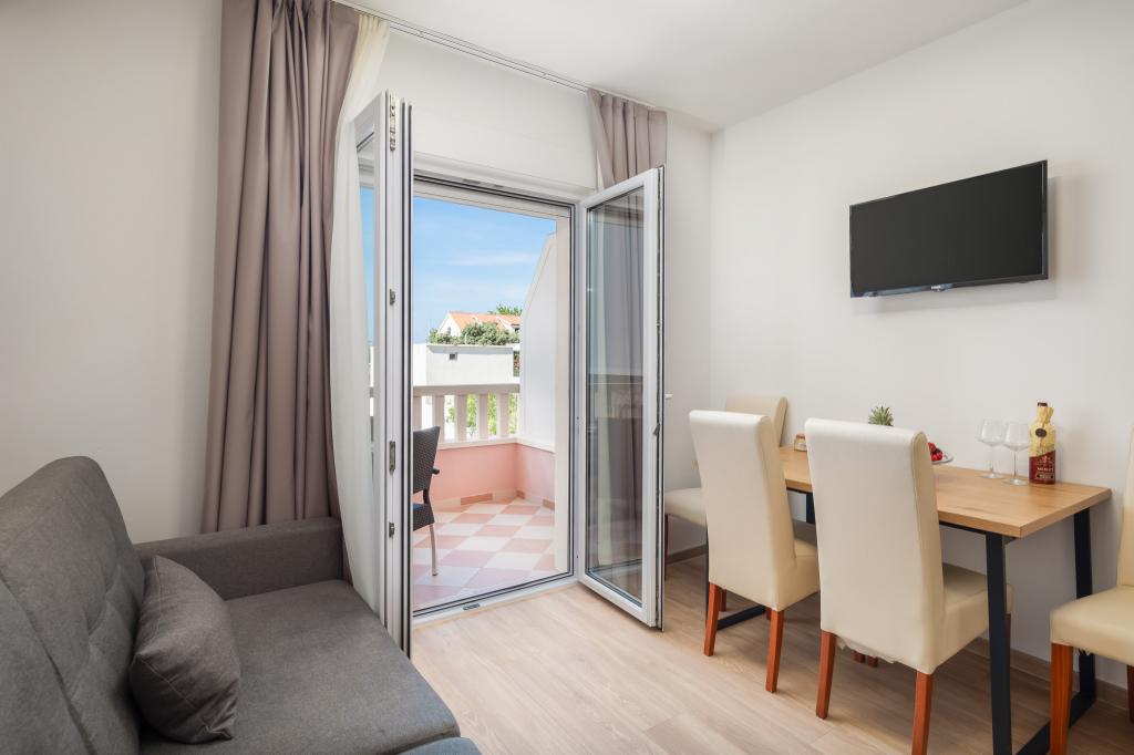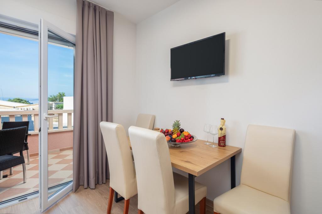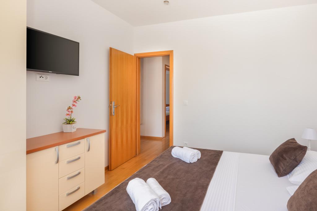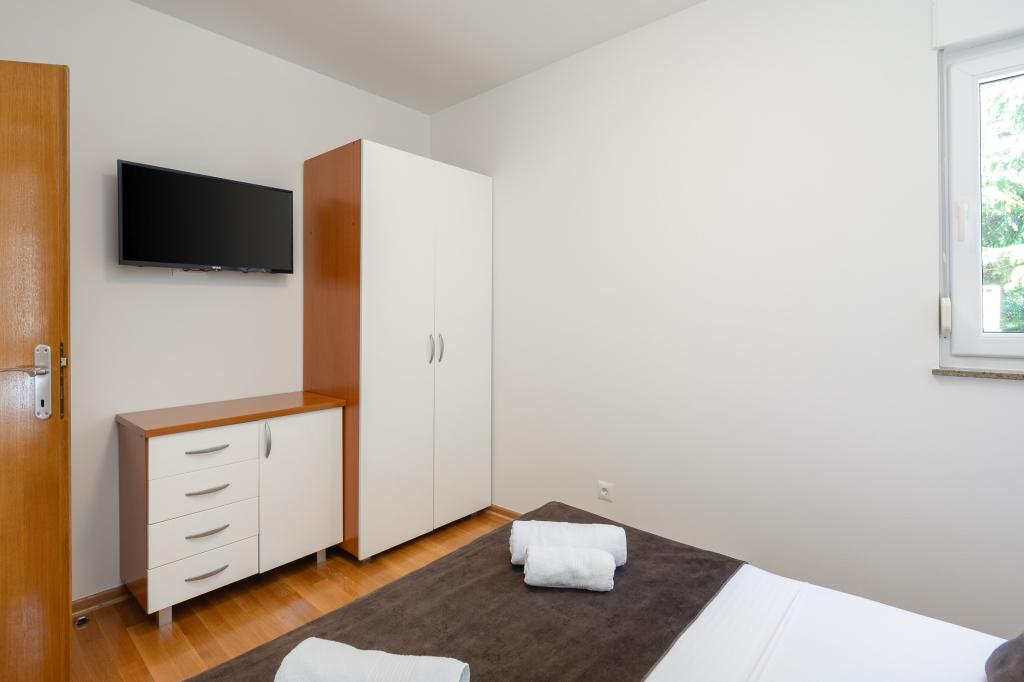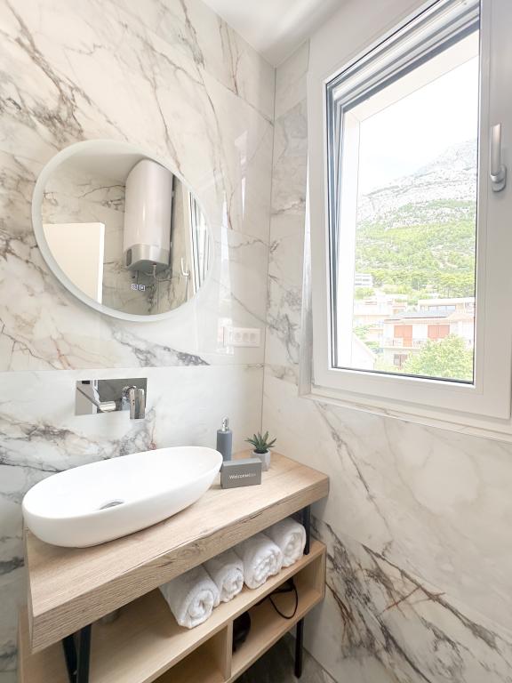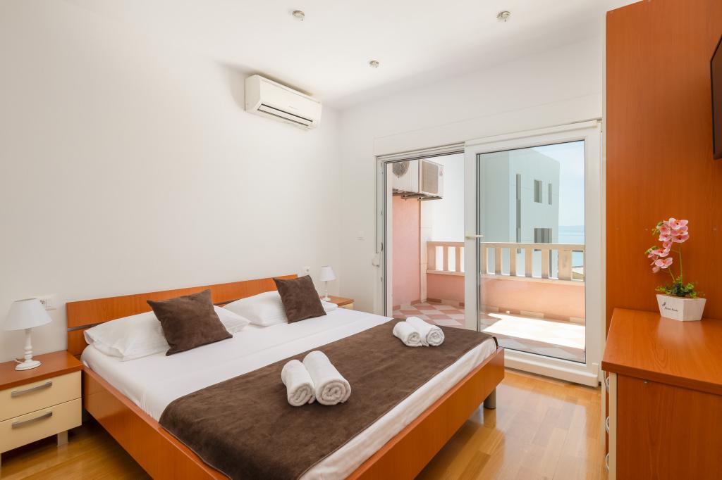Apartmány Teo se nacházejí 150 m od pláže v Bašce Vodě. Skládá se z apartmánu pro 4 osoby, dále apartmánu pro 6 osob a dvou apartmánů pro 8 osob. Apartmány jsou vybaveny kuchyní, koupelnou, obývacím pokojem a vlastním balkonem. V garáži se nachází společná pračka. Parkování je zdarma v rámci objektu.