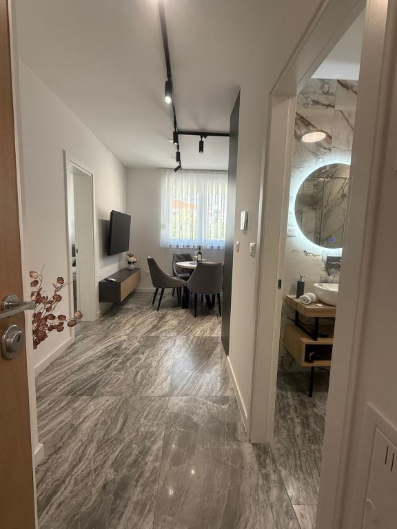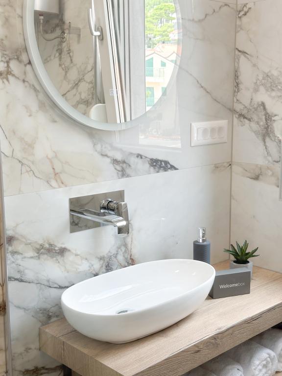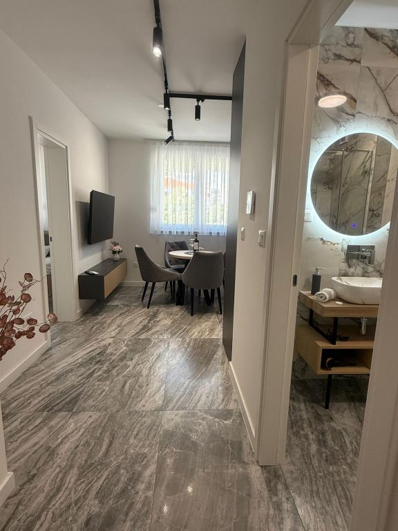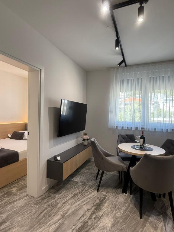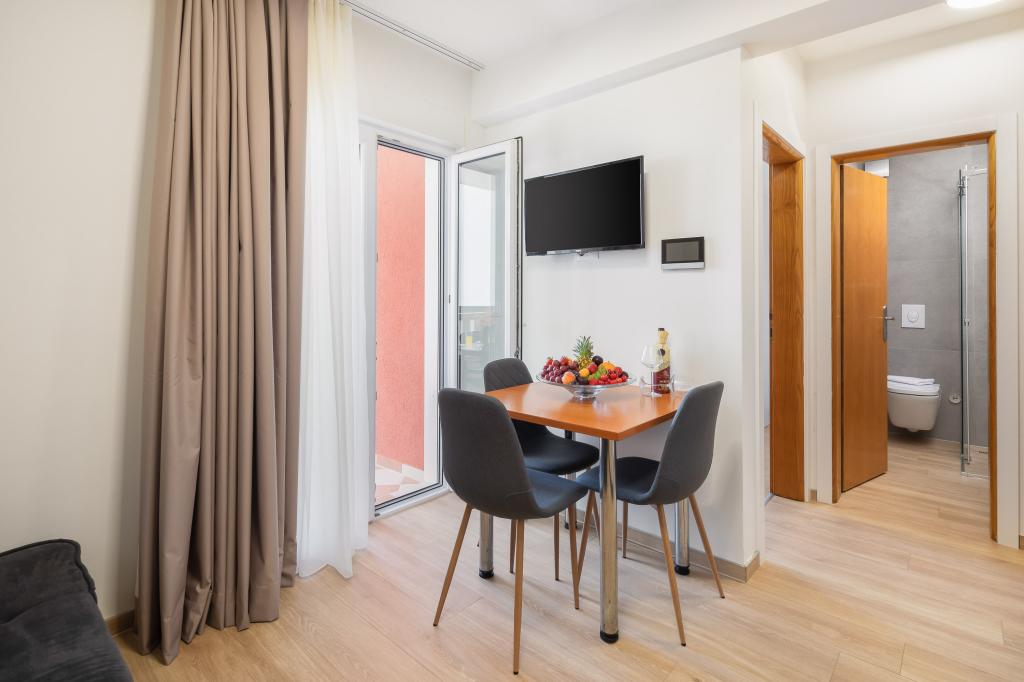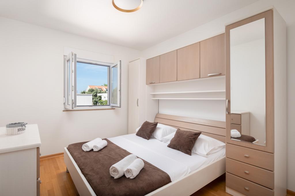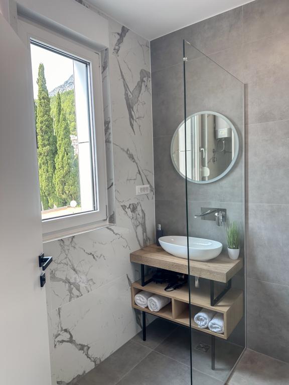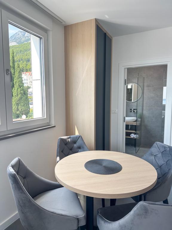 Apartmány Teo se nacházejí 150 m od pláže v Bašce Vodě. Skládá se z apartmánu pro 4 osoby, dále apartmánu pro 6 osob a dvou apartmánů pro 8 osob. Apartmány jsou vybaveny kuchyní, koupelnou, obývacím pokojem a vlastním balkonem. V garáži se nachází společná pračka. Parkování je zdarma v rámci objektu.