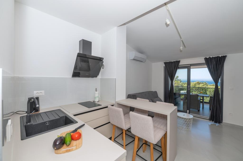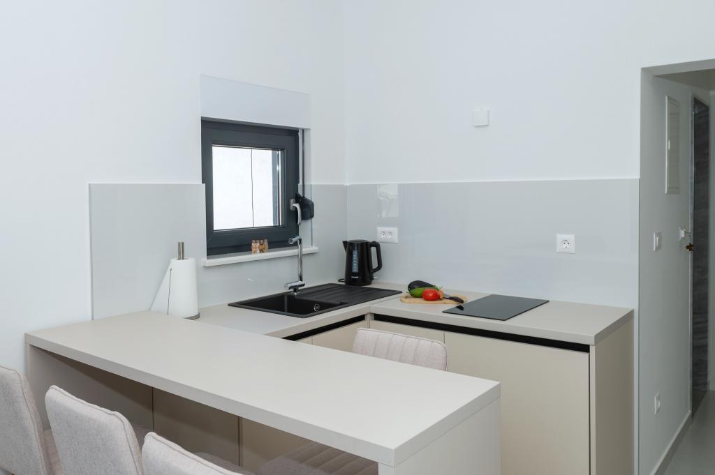 Apartmány jsou moderně vybaveny veškerým potřebným zařízením pro příjemný pobyt. Pohodlí bytu si stejně užijí páry nebo rodiny. Terasa s výhledem na moře je vybavena sedacím nábytkem. Objekt se nachází v blízkosti pekárny, supermarketu a má soukromé bezplatné parkoviště. Vzdálenost od moře, pláže a veškerého vybavení je 500m. Naši hosté jsou vždy spokojeni s nabídkou a umístěním apartmánů! Vítejte!