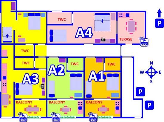Apartmán pro čtyři osoby se dvěma přistýlkami (120 m2)