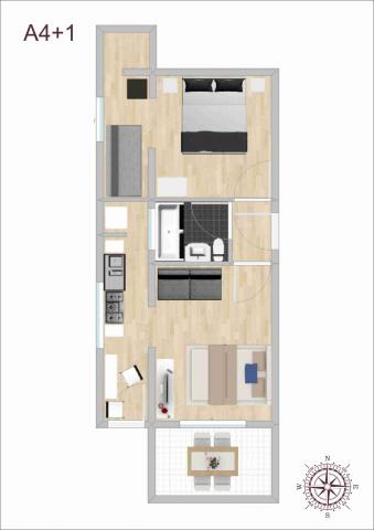 Apartmán pro tři osoby se dvěma přistýlkami (45 m2)