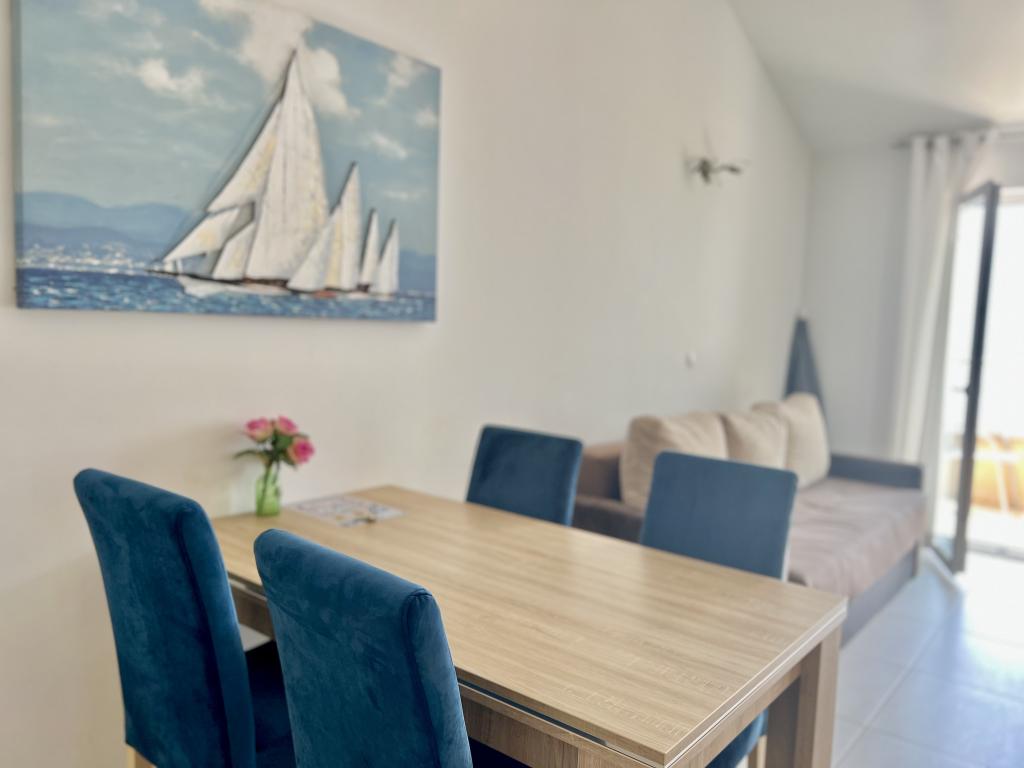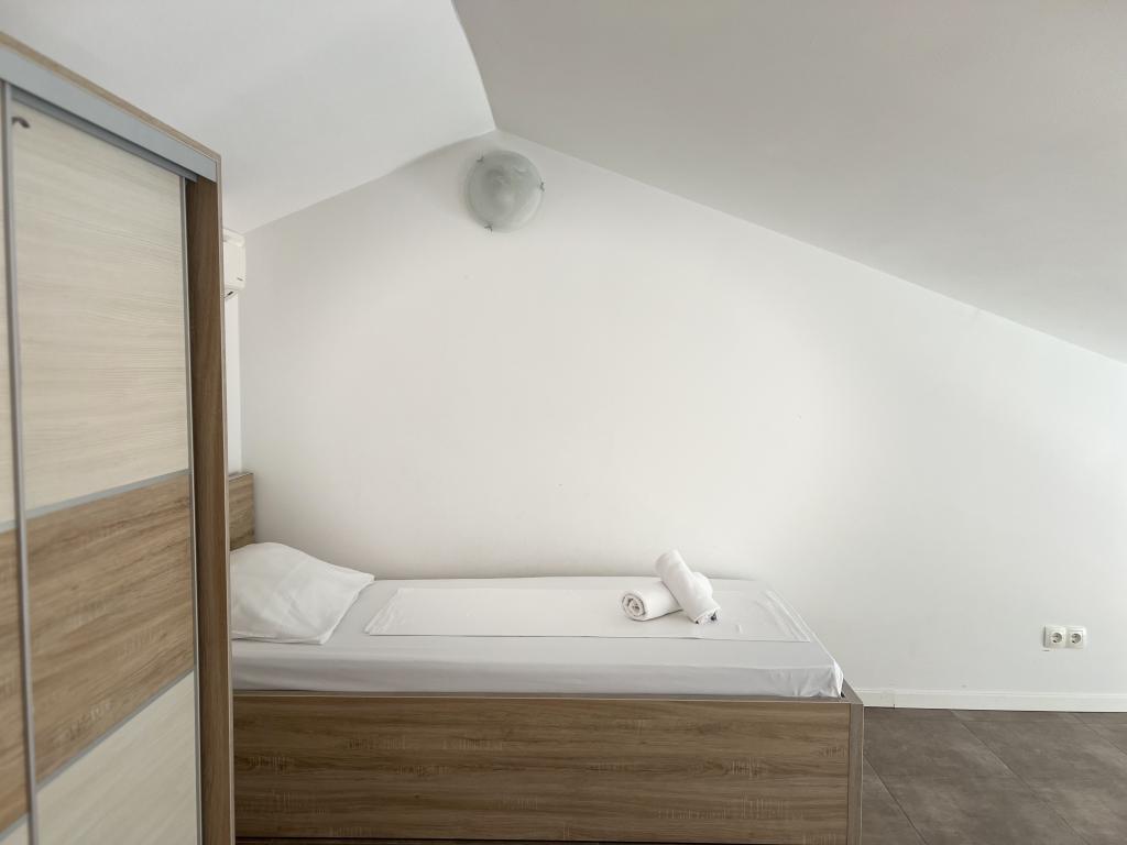 Pobytová taxa je v ceně.Nevšední výhled z balkonu je jistě uskutečněním vašich snů. Přes sklo na zábradlí balkónu si můžete vždy vychutnat výhled na Jadran. Lůžka v apartmánu mají pohodlný rozměr 1,60 m na šířku a 2,00 m na délku. O ložní prádlo a ručníky se nemusíte starat. V ceně je zahrnuta pravidelná výměna ložního prádla a ručníků. Po dovolené u moře se můžete osvěžit v koupelně. Moderní design naší koupelny a vany vám v tom pomůže. Máme již postaráno o ložní prádlo a ručníky, které běžně pravidelně a na vyžádání měníme. V kuchyni můžete ukázat, že jste kulinářská hvězda. K tomu vám nabízíme talíře, hrnce a nádobí. Rychlovarná konvice, vývrtka, sklenice, hrníčky a lednice s pro