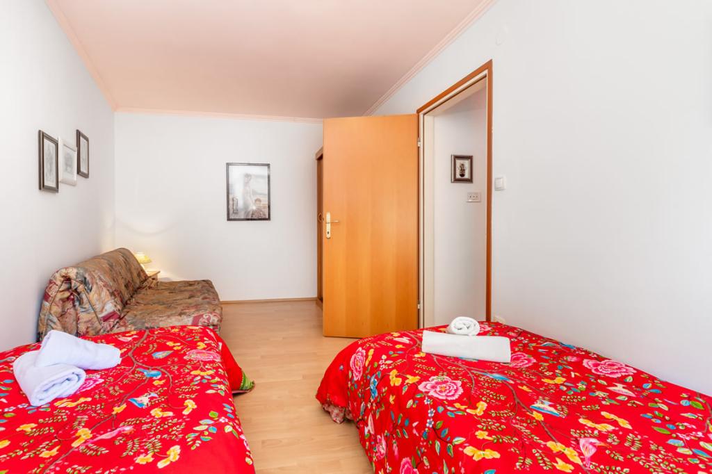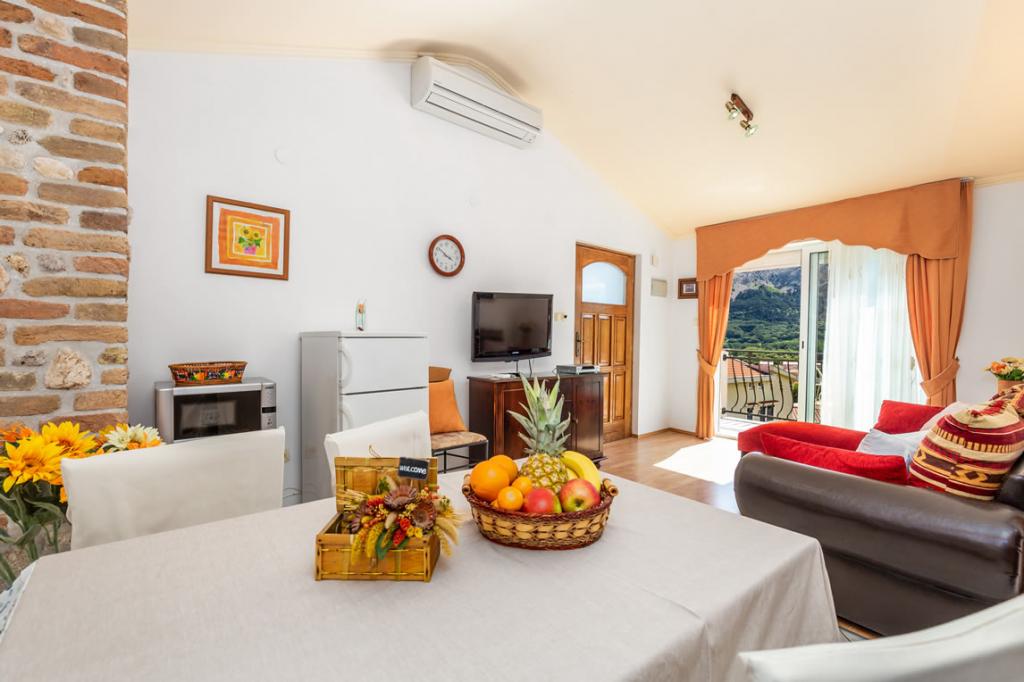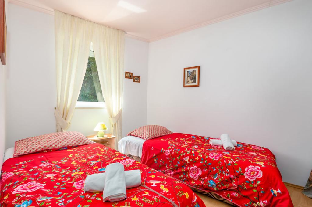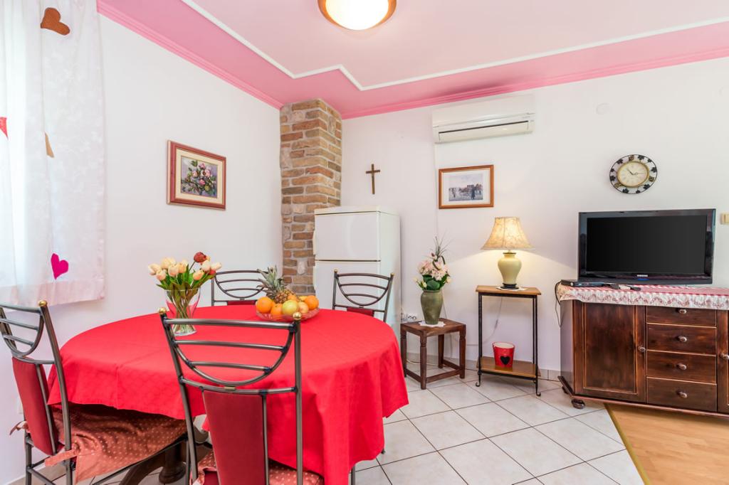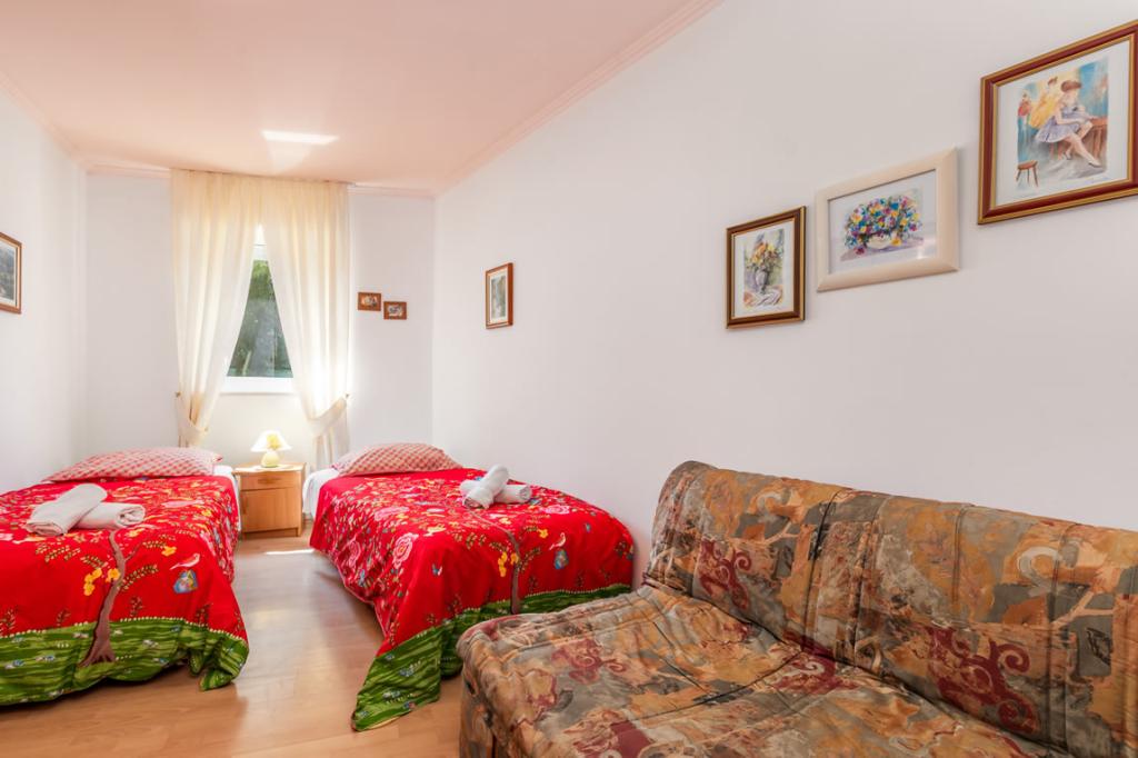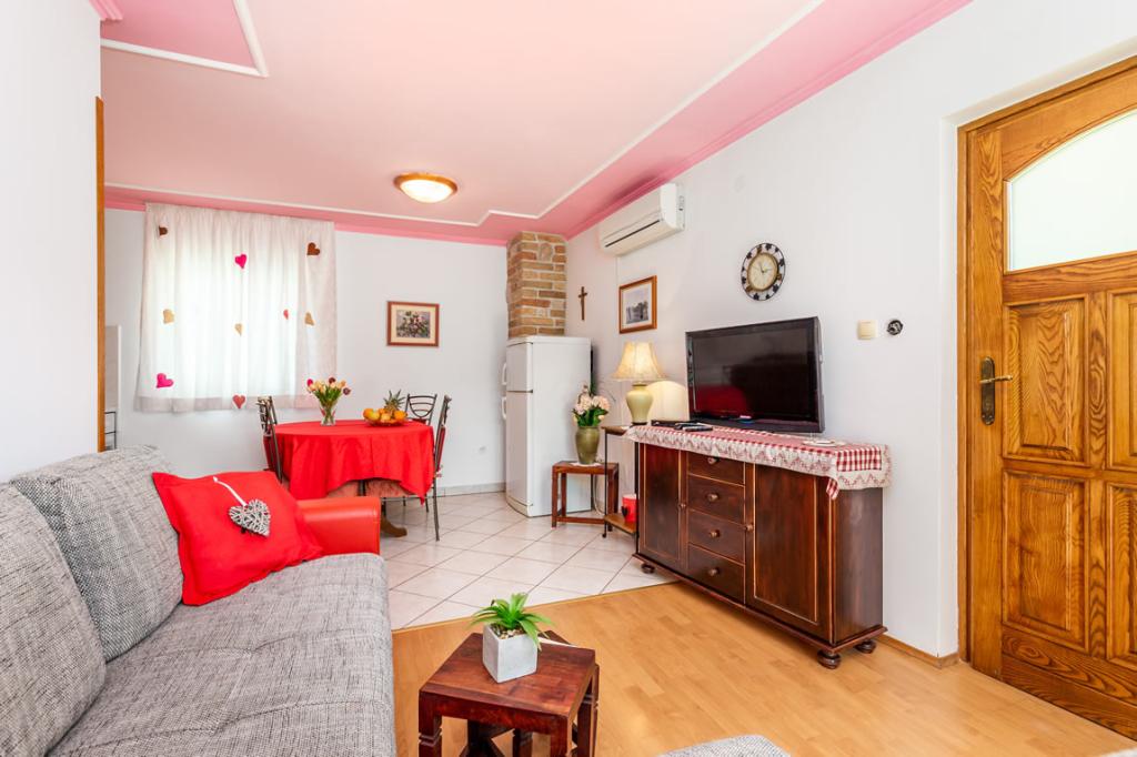 Apartmány Patricia se nachází v klidné lokalitě v blízkosti centra, 5 minut chůze (350 metrů) od pláže, která má evropskou modrou vlajku. Apartmány jsou 60 m2, vybavené pro 4-7 osob. Apartmány jsou nově zrekonstruované, sestávají z jedné ložnice s manželskou postelí, jedné místnosti se dvěma až třemi lůžky, koupelny s WC, prostorné a plně vybavené kuchyně, obývacího pokoje s křeslem a satelitní TV. Každý apartmán má balkon. Hosté mají k dispozici gril s terasou obklopenou zelení a parkovací místo před domem. V bytě je klimatizace a internet.