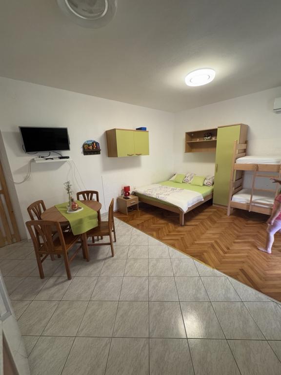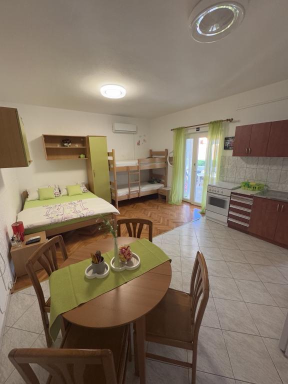 DŮLEŽITÉ!!! Apartmán Andrea se nachází ve městě Rijeka, nikoli na ostrově Krk. Rijeka má v okolí (až 30 km) mnoho krásných míst s krásnými plážemi. Apartmány Anita se nacházejí v Jurandvoru, nedaleko Bašky. Jsou vzdálené pouhých 1200 m od jedné z nejkrásnějších písečných pláží na Jadranu. Apartmány obsahují vše, co potřebujete, abyste si vy, vaše děti a domácí mazlíčci mohli u nás plně užít dovolenou. Každý apartmán má kuchyň (rychlovarná konvice, toustovač, kávovar, nádobí, mycí prostředek na nádobí), koupelnu (ručníky, mýdlo na ruce), ložnici s ložním prádlem, terasu, satelitní TV, Wi-Fi, klimatizaci. Můžete také použít žehličku a pračku a apartmány 2 a 3 mají i myčku nádobí. Parkování pro vaše auta se nachází v okolí domu. Před domem je pro vaše děti hřiště. Zatímco si vaše děti hrají, vy si můžete odpočinout u grilu. A samozřejmě jsou vaši domácí mazlíčci vždy vítáni. :)