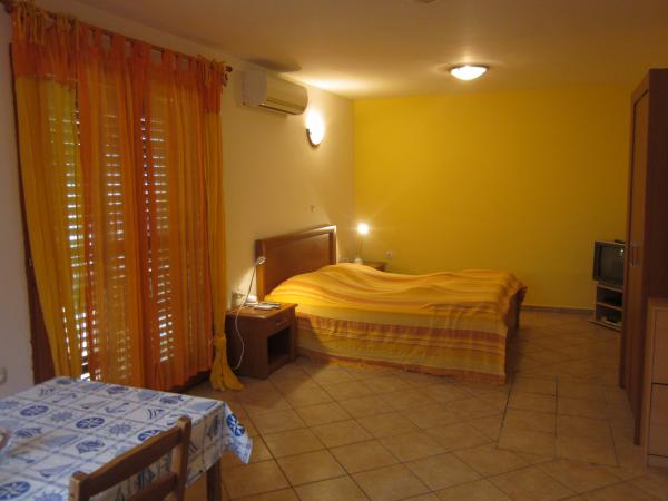 V bytovém domě jsou 4 apartmány. Z nich dva velké apartmány pro celkem 4 osoby, z nichž každý má 42 m2. V zadní části domu se nachází 2 studio apartmány pro 2 osoby. V budově se nachází parkoviště s parkovacím místem pro každý apartmán. Všechny apartmány jsou klimatizované a mají satelitní TV. Bytový dům se nachází 10 minut chůze na slavné hlavní pláži (1800 metrů dlouhá, která je zvláště vhodná pro děti), a 10 minut chůze od centra města. V blízkosti jsou dva obchody ve vzdálenosti 100 metrů a velmi dobrá restaurace. Úklid je zahrnut v ceně, ložní prádlo se mění každých 7 dní.