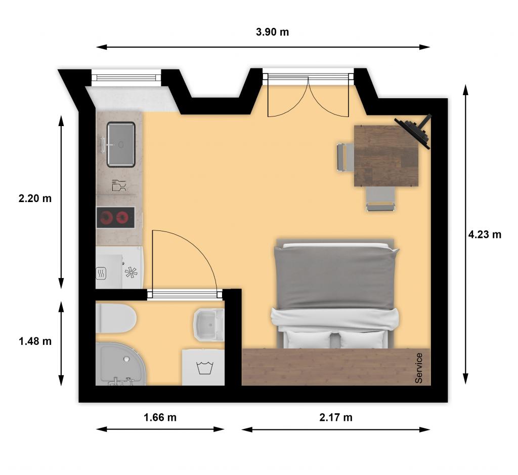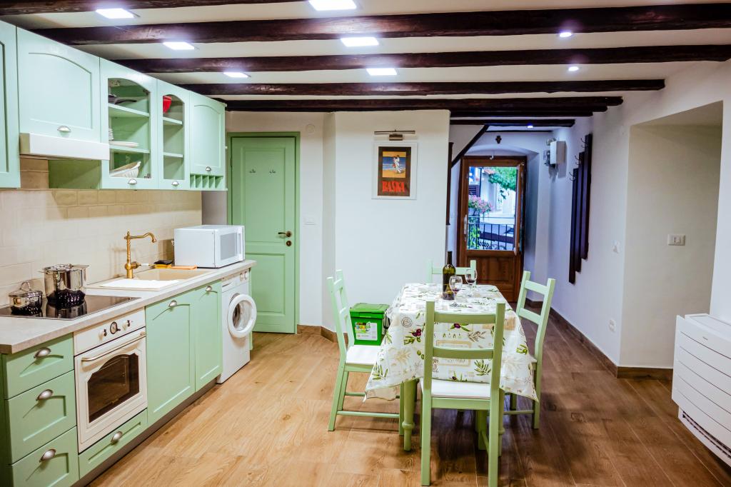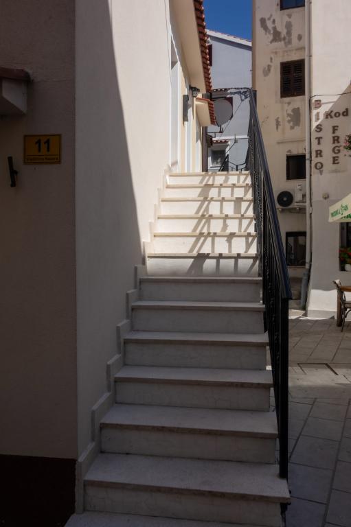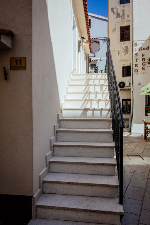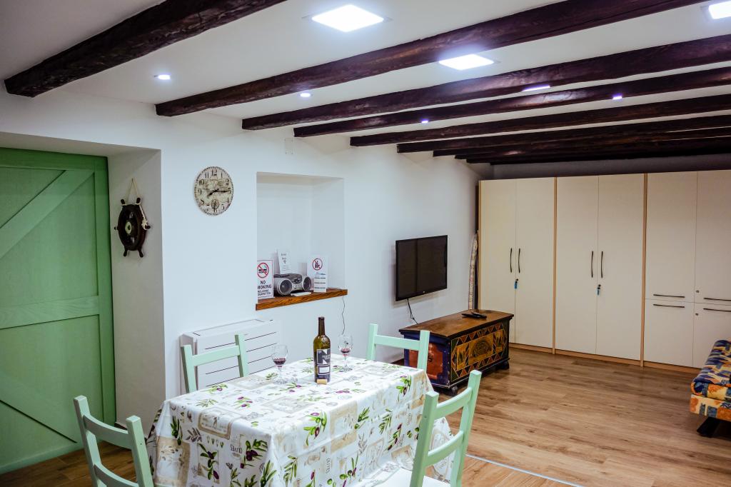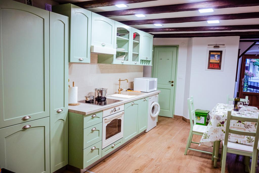 Jen pár kroků od moře, malý skromný koutek pro dvě osoby, kde najdete úkryt a pohodlí po dni stráveném procházkou a koupáním v čistém moři. Apartmány mají vše potřebné, aby se dvě osoby cítily pohodlně: myčka nádobí, pračka, klimatizace a Wi-Fi. Má velmi výhodnou polohu v centru města, nachází se v nejstarší historické části Bašky. Naproti studiu je první kamenný dům v Bašce, postavený již v roce 1525 (MDXXV). Nachází se vedle staré vodní fontány. V blízkosti jsou obchody, restaurace, bary a rybí trh. V zájmu zachování staré části města a přístavu není povolen provoz motorových vozidel. Studio má hlídané parkoviště blízko centra. Je to ideální místo pro dva lidi, kteří si chtějí zasportovat, projít se při východu nebo západu slunce, vychutnat si gastronomické speciality Bašky v charakteristických barech staré části Bašky. Procházky po dlouhé promenádě u moře dýchající vůni moře nebo koupání pod měsíčním světlem a hvězdami
