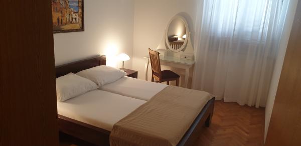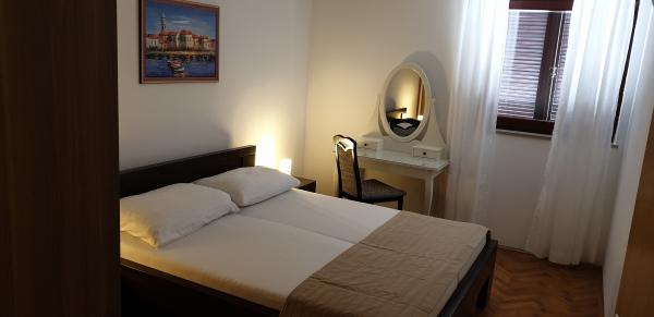 Naše 4hvězdičkové apartmány se nacházejí ve 2. řadě v oblasti Zarok, na klidném místě a s výhledem na moře. Pláž Vela je jen pár kroků odtud (50 m); Obchod a pekárna jsou hned za rohem; Promenáda / centrum města s restauracemi, bary, kavárnami, lékárnou, supermarkety atd. Jsou v docházkové vzdálenosti. Každý z našich 3 apartmánů A2 2 (51 nebo 60 m2) se skládá z ložnice s manželskou postelí, předsíně, koupelny s WC a sprchovým koutem, obývacího pokoje s kuchyní, jídelním koutem a rozkládací pohovkou (pro 2 osoby). terasa s posezením. Veškeré příslušenství je pro vás zdarma: bezdrátové připojení k internetu, parkování, trezor, fén, kávovar, satelitní TV, klimatizace / topení a další. Apartmány 2 a 3 mají navíc vlastní zahradu s fíkovníky. Apartmán 3 deluxe se také rozšířil na zimní zahradu s jídelním koutem a navíc nabízí vytápění na mramorovém panelu, pračku a soukromý gril.