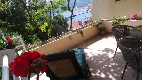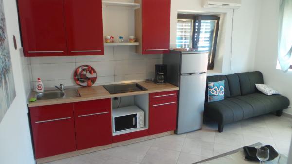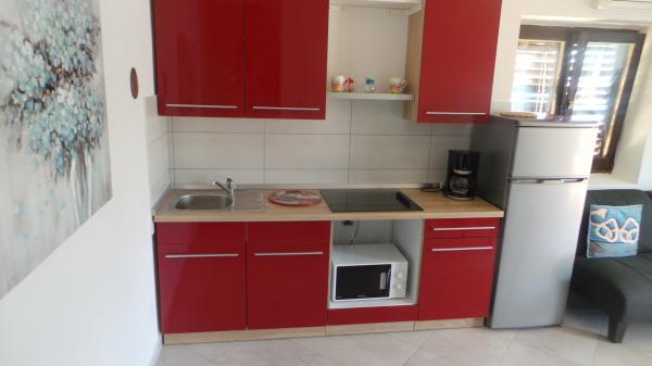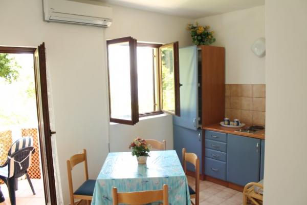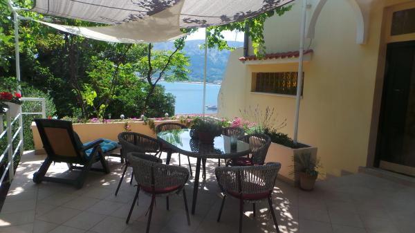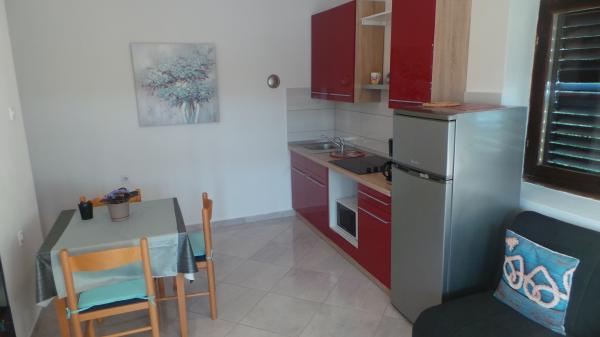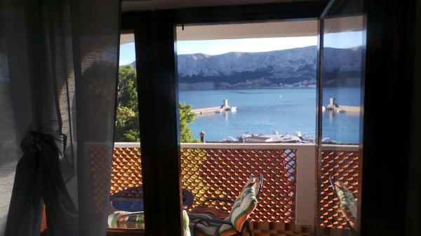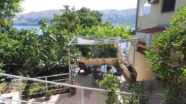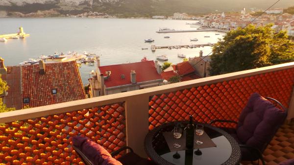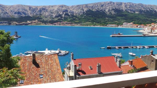 Kompletně zařízené apartmány s terasou a přímým výhledem na moře a celé Bašce. Apartmán Robi je byt s balkonem s výhledem na moře, nebo na straně domu. Dům u moře po schodech a není vhodný pro špatně pohyblivé, osoby na invalidním vozíku. Objekt má vlastní parkoviště. V blízkosti je nudistická pláž. Na malé pláži je pouhých 100 m a Vela pláže, slavné Baška 2 km dlouhá písečná pláž je vzdálena asi 15 minut chůze k moři. Dům se nachází v klidném místě, nad přístavem, vhodný pro hosty s plavidly.