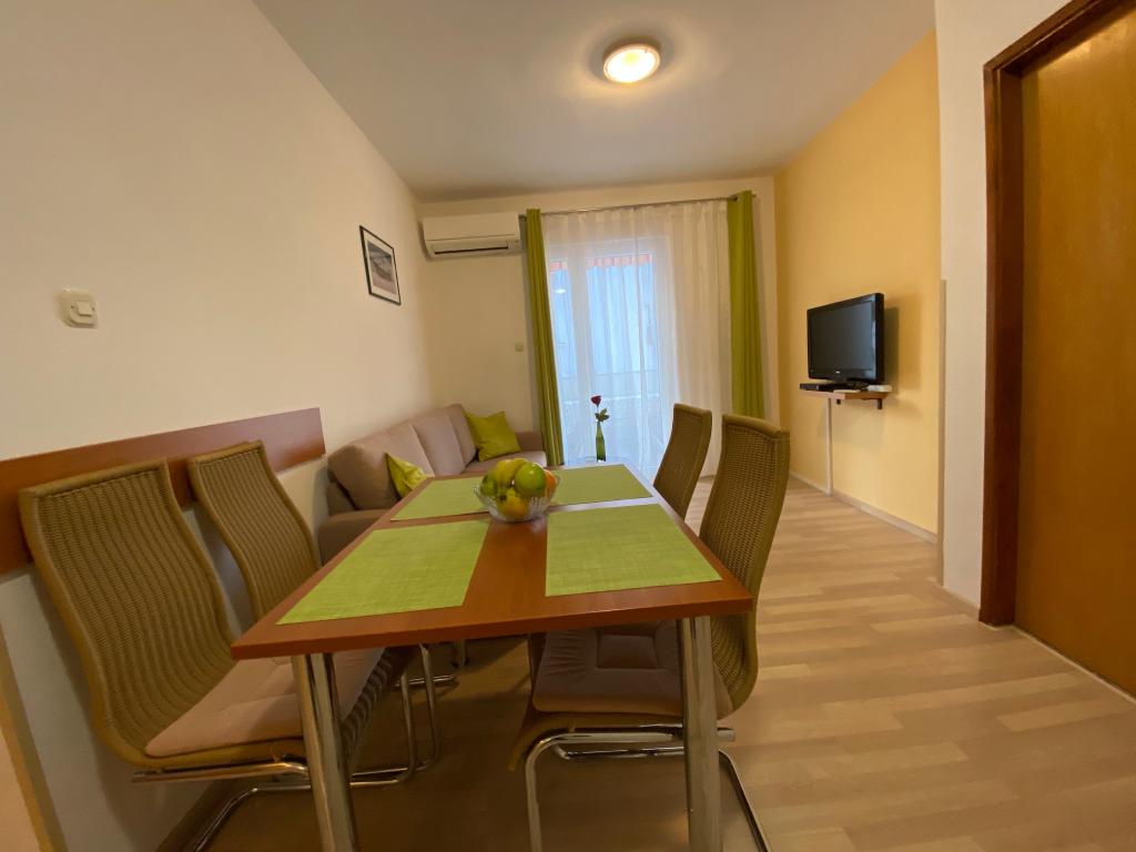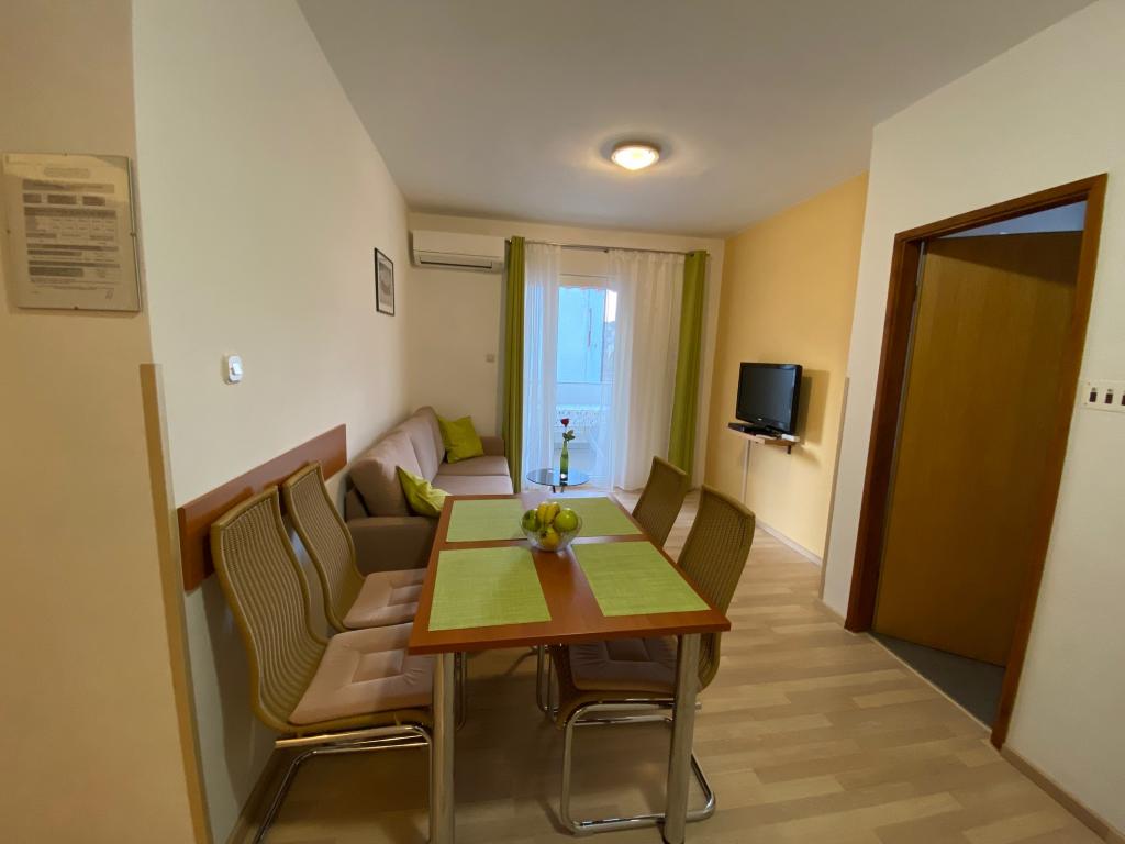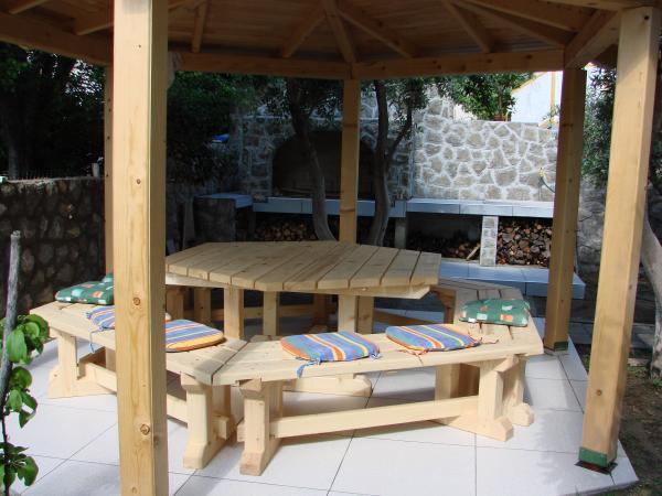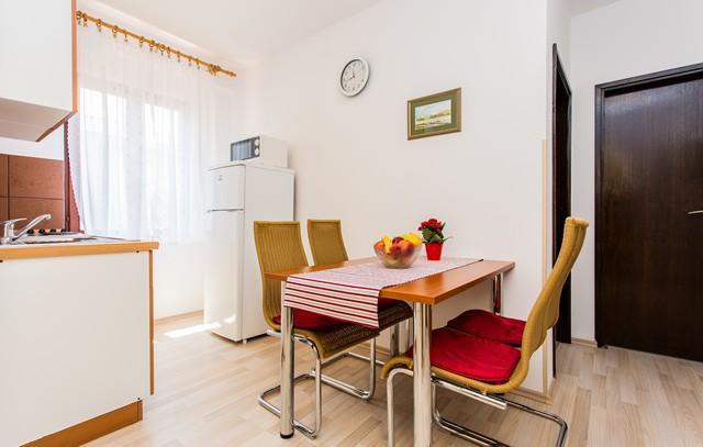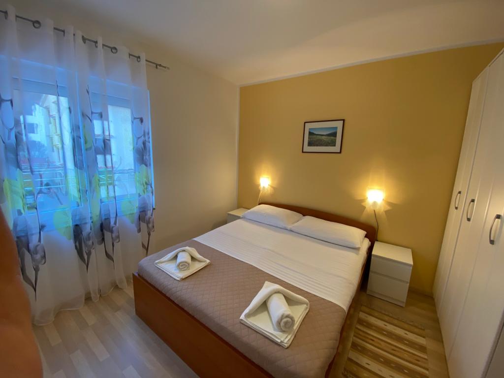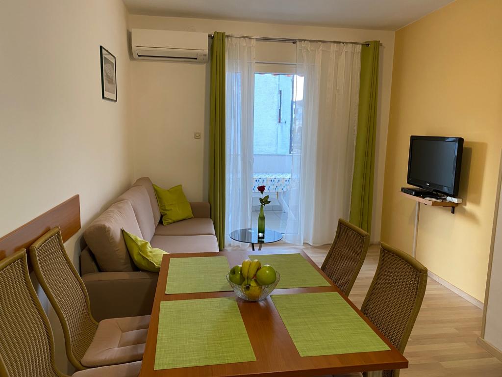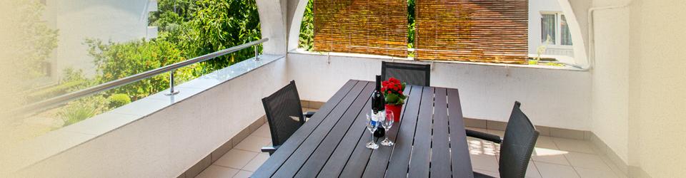 Náš dům se nachází v klidné ulici, pouhých 350 metrů od moře a pláže. Apartmány jsou plně vybaveny, mají SAT TV, bezdrátové připojení k internetu, klimatizaci, hlídané parkoviště umístěné ve dvoře domu a na zahradě ve stínu olivovníků mají naši hosté k dispozici gril.