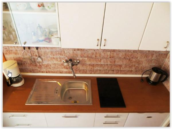 Jednotky jsou pronajmout samostatně. Vila se skládá ze tří apartmánů, každý pro 5 osob, protože v obývacím pokoji rozkládací pohovkou, tedy tři studia s kuchyňským koutem, dvě studia pro 2 osoby, jedna s přistýlkou v obývacím pokoji a ložnici pro dva lidí.