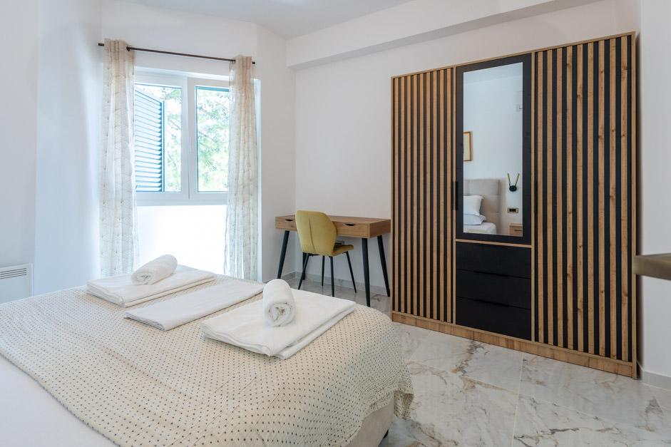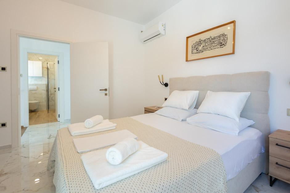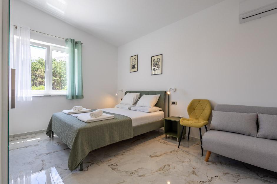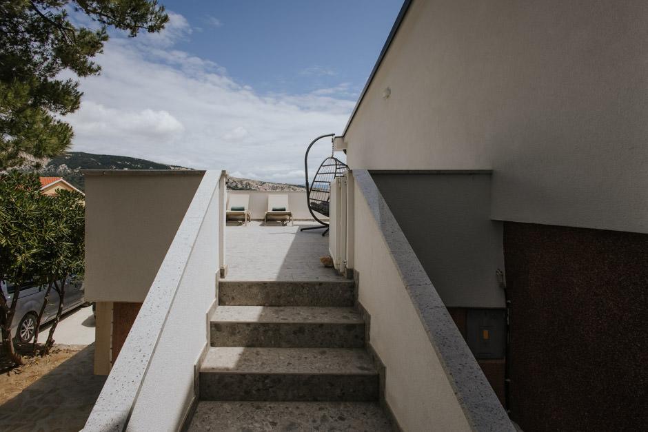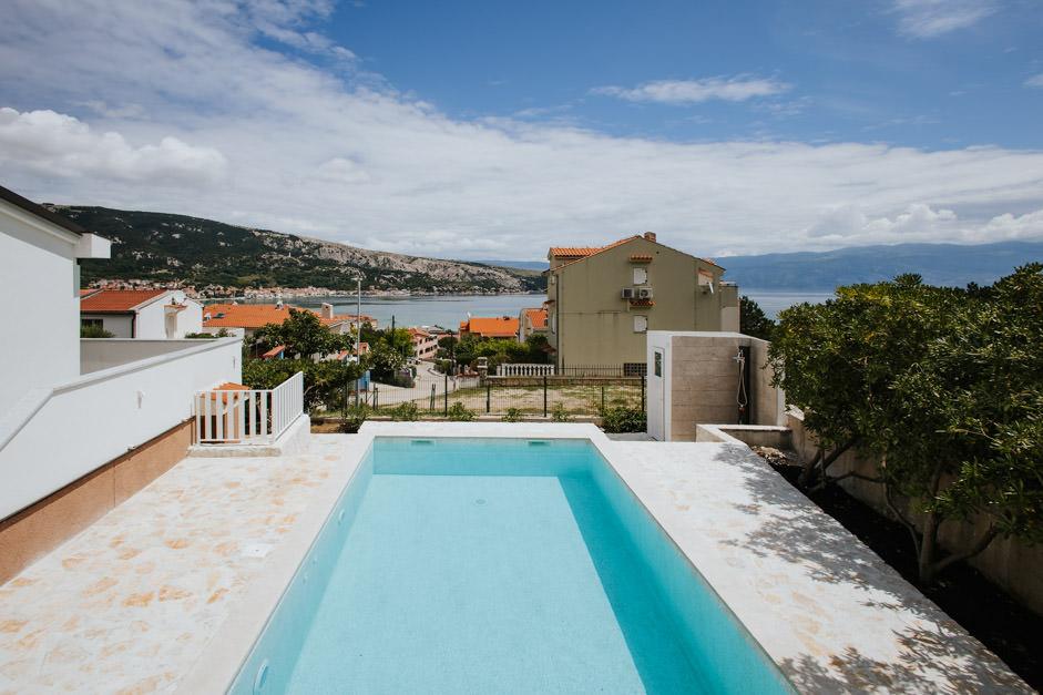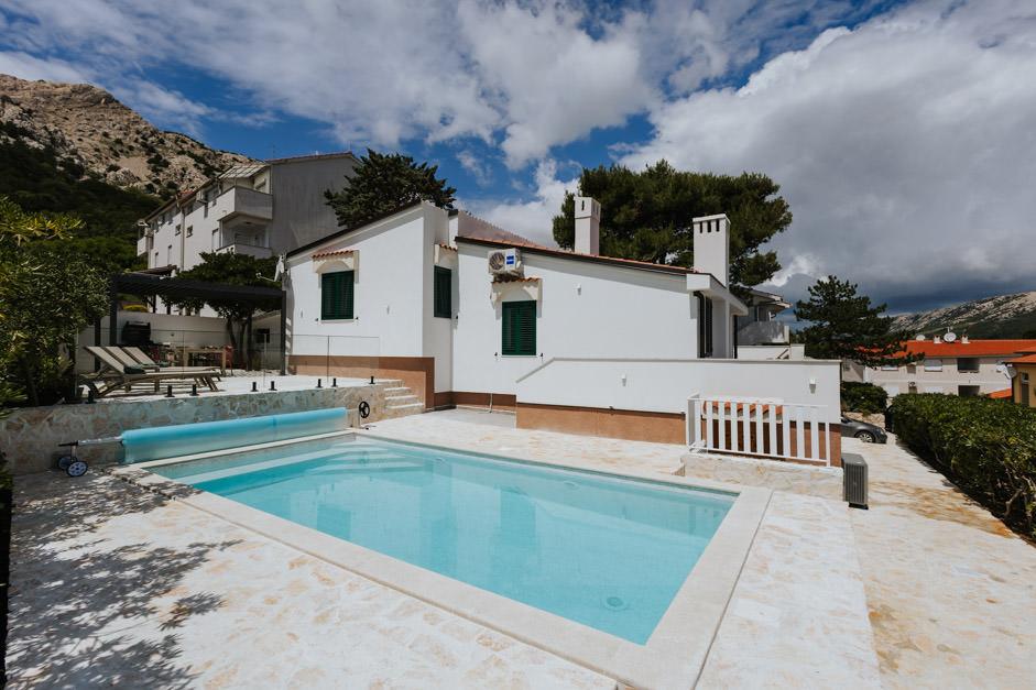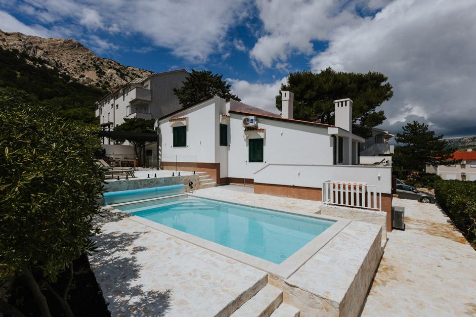 Naše nově zrekonstruovaná Villa Zlata se nachází v Bašce, turistické perle skryté zátoky ostrova Krk. Dům je 400 m od centra města a 200 m od moře, jehož vlny narážejí na oblázkovou pláž dlouhou 1800 m. Baška je místo s bohatou minulostí a kulturním dědictvím a nedaleko, v Jurandvoru, se nachází známá Bašćanska ploča, jedna z nejstarších písemných památek v chorvatském jazyce. Villa Zlata nabízí ubytování pro 4+2 osoby, je i pet friendly, takže ráda pohostí i vašeho mazlíčka. Je plně zařízený a vybavený a nachází se v intimním prostředí borového lesa, kde si budete moci užít nově vybudovaný soukromý vyhřívaný bazén. Zvláštní potěšení z dovolené můžete pocítit při posezení u venkovního grilu a altánku, zatímco ti nejmenší se mohou bavit v bezpečí dětského koutku. Pro ideální zakončení letního dne si odpočiňte na dvou terasách s vůní borovic a výhledem na okouzlující zátoku, kde se něžná modř moře a nebe mísí s tvrdostí obrovského Velebitu v dálce.