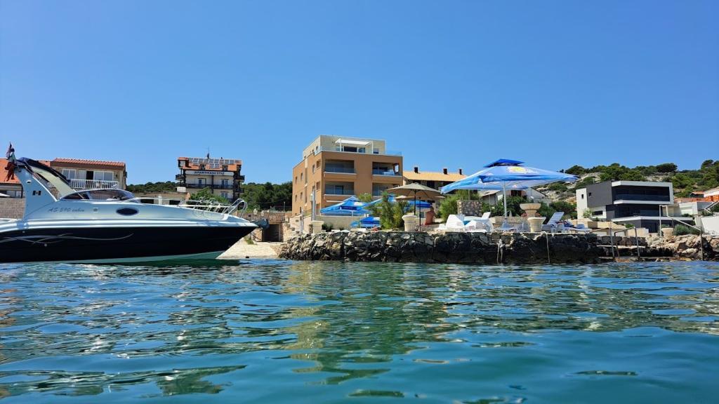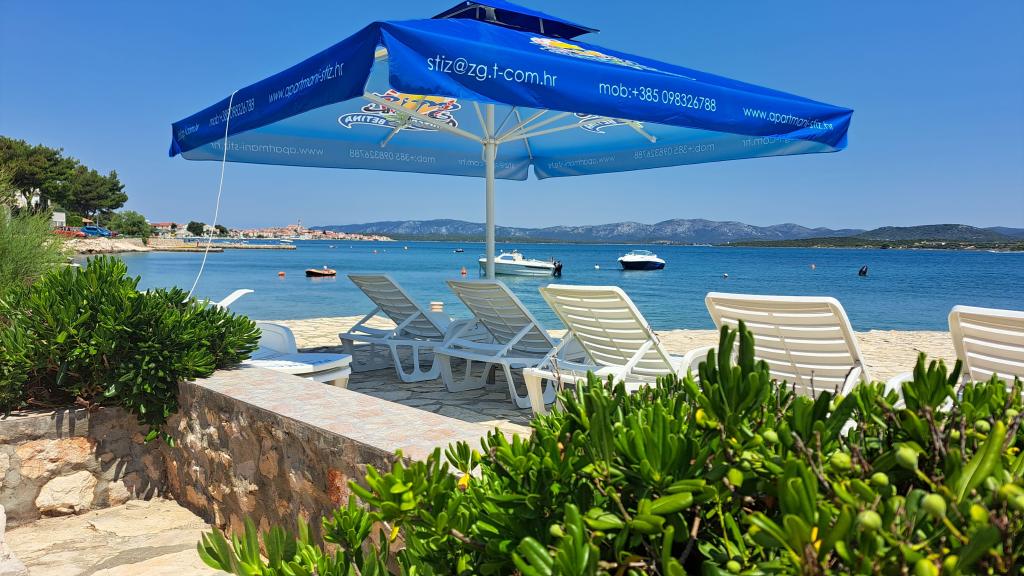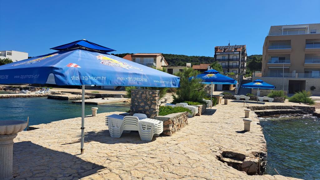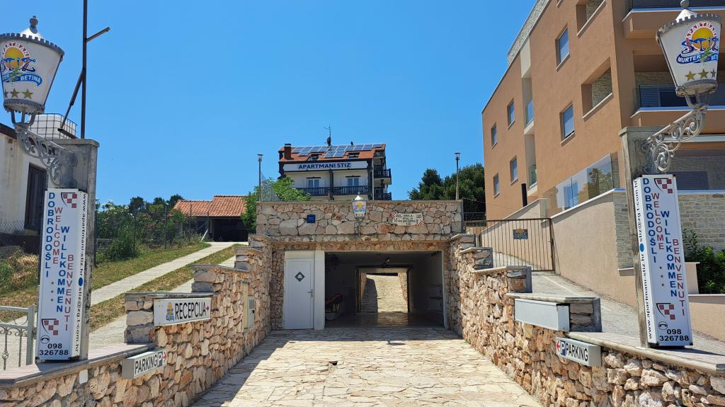 Apartmánový dům ŠTIZ-BETINA - Vaše ideální dovolená u moře! Apartmánový dům ŠTIZ-BETINA se nachází přímo u pobřeží ve městě Betina na ostrově Murter a nabízí dokonalé prostředí pro odpočinkovou dovolenou. Naše upravená kamenná pláž je vybavena lehátky a velkými slunečníky, které můžete využívat zdarma. Přijedete lodí? Nabízíme možnost spouštění a kotvení pro plavidla do 7 metrů, se zajištěným parkováním pro přívěs uvnitř oploceného dvora. Poloha: Dům se nachází 1,5 km od centra Betina, kde najdete staré centrum města, obchody, kavárny, restaurace a hlavní městskou pláž. Ostrov Murter je snadno dostupný autem, protože je s pevninou spojen padacím mostem, který se zvedá dvakrát denně. Nabízíme: šest apartmánů (2+2) a čtyři studia (2+1). Každá ubytovací jednotka zahrnuje: plně vybavenou kuchyň, klimatizaci, bezplatné Wi-Fi, SAT HDTV s plochou obrazovkou, toaletu se sprchou, ložní prádlo a ručníky. Všechny apartmány a studia mají krásný výhled na moře a do zahrady.