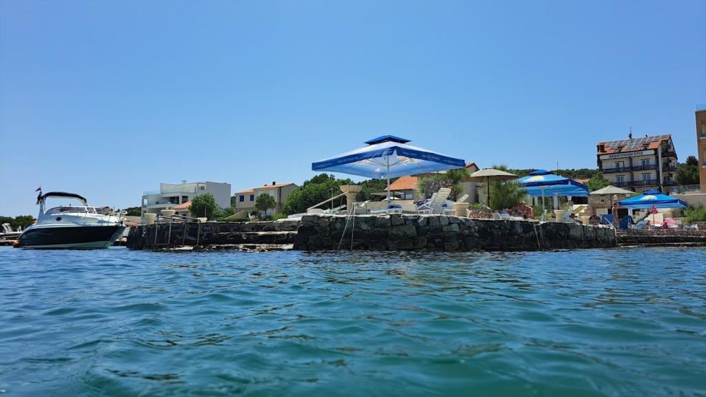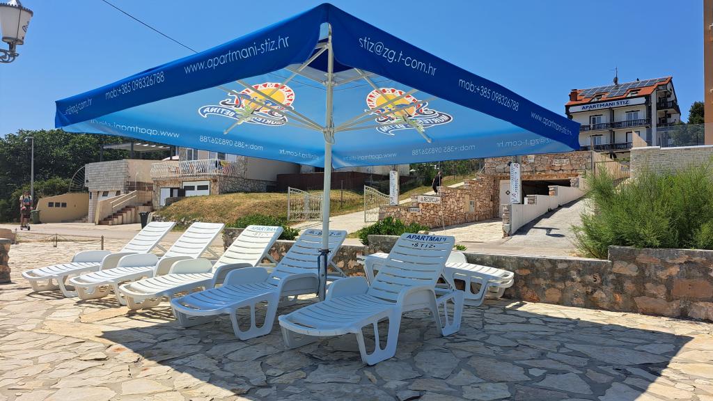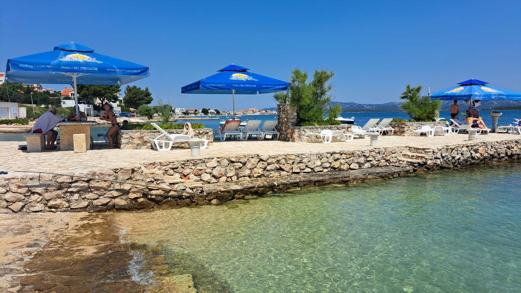 Dobře udržovaná pláž a zařízení pro dokonalý požitek! Nemusíte hledat ideální místo ke koupání - udržovaná pláž je přímo před naším domem! Pláž je dlážděna přírodním kamenem a v moři je jemný písek, který umožňuje snadný a bezpečný vstup do vody. Na pláži můžete zdarma využít lehátka a velké slunečníky k relaxaci u moře. U pláže je velká garáž s WC, kde si můžete nechat své vybavení jako SUP, kajaky, prkna na windsurfing, nafukovačky... Pro hosty, kteří přijedou s lodí (do 7 m), nabízíme možnost startu přímo na naší pláži. Loď můžete kotvit podél břehu nebo na bóji, přičemž uvnitř oploceného dvora je i velké parkoviště pro auto a přívěs. V naší zelené zahradě na Vás čeká velký gril s kompletním vybavením pro přípravu chutných jídel, který je Vám k dispozici. Po příjezdu na vás navíc čeká welcome drink.