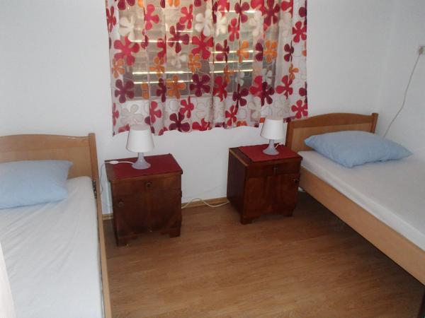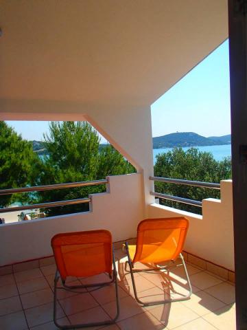 Apartmány v rodinném domě u moře, s jeho betonová pláž. 10 minut chůze od centra města Betina, obchody, pošta, gradkse pláž. 20 minut chůze od centra Murteru. Parkování, klimatizace, venkovní uzavřený sprchový kout. V klidné ulici, daleko od hluku a davy lidí.