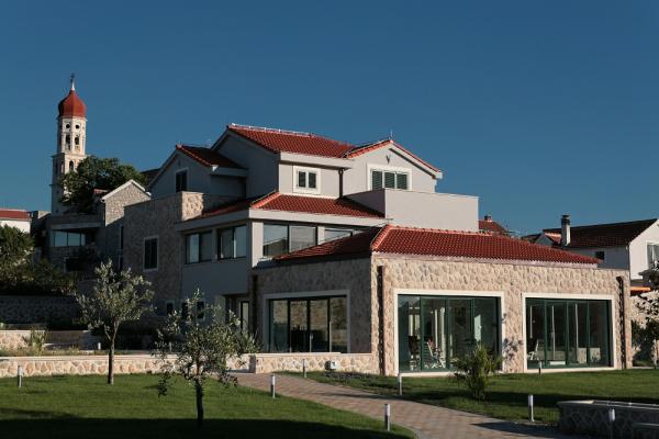Luxusní vila na ostrově Murter metrů Betina 150 od Marina Betina a 300 metrů od pláže. 4 apartmány ve dvou, tří kuchyní, 4 koupelny, 2 toalety, 2 obývací pokoje, 3 jídelny, balkón a každý byt, terasa se stolem a židlemi venku, gril, klimatizace / topení v celém domě. Wifi internet. Přízemí je 32m2 bazén, sauna, jacuzzi, fitness místnost a krb. Hřiště pro děti mimo a parkování pro 6 aut.