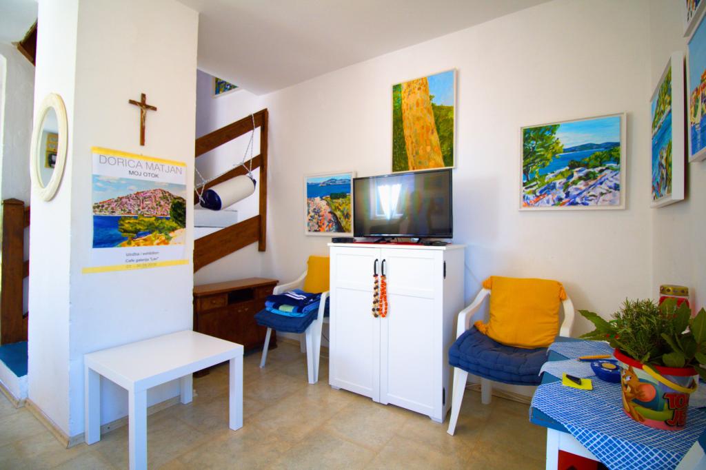 Apartmán - rekreační dům je samostatný objekt. Dům má rozlohu 80 m2. Má tři ložnice, kde se může ubytovat 5 dospělých. Má obývací pokoj, který lze využít ke spaní. Má koupelnu se sprchovým koutem. Plocha balkonu/terasy je 30 m2. Byt se nachází v přízemí. Byt je vybaven TV, troubou, bezplatným Wi-Fi připojením k internetu, pračkou. Parkování je zajištěno a zahrnuto v ceně. Byt je asi 800 m od centra města a 20 m od moře nebo první pláže v Betině. Domácí mazlíčci jsou povoleni za příplatek. Byt se nachází ve skvělé lokalitě u moře. Terasa nabízí výhled na moře a okolní ostrovy. První písečná pláž "Plitka Vala" je vzdálena pouhé 4 minuty chůze. Obchod a restaurace jsou vzdálené 5 minut chůze. Odlehlá a klidná zátoka "Kosirina" s výjimečně čistým mořem je vzdálena 18 minut chůze. Do centra města dojdete za 20 minut.