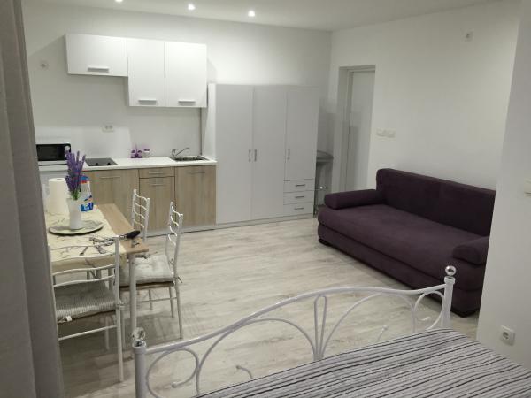 Plně zařízený byt v přízemí, u moře. Určený až pro 6 osob. Skládá se z 1 ložnice s manželskou postelí a jedním rozkládacím gaučem, velkou koupelnou a obývacím pokojem. V prostorném obývacím pokoji jsou 2 lůžka až pro 4 osoby. Byt se nachází 10 m od moře a má svou vlastní velkou terasu a zahradu s grilem použití, a kryté parkoviště. V bytě je klimatizované a pohodlné, s TV, WIFI-TV a myčkou na nádobí. Zvláštností tohoto bytu je jeho poloha v mimořádně klidném prostředí, obklopen pouze z moře a přírody, které je ideální jak pro mladé, a to jak pro rodiny s dětmi a dospělých lidí, kteří si chtějí vychutnat dobře zasloužený odpočinek.